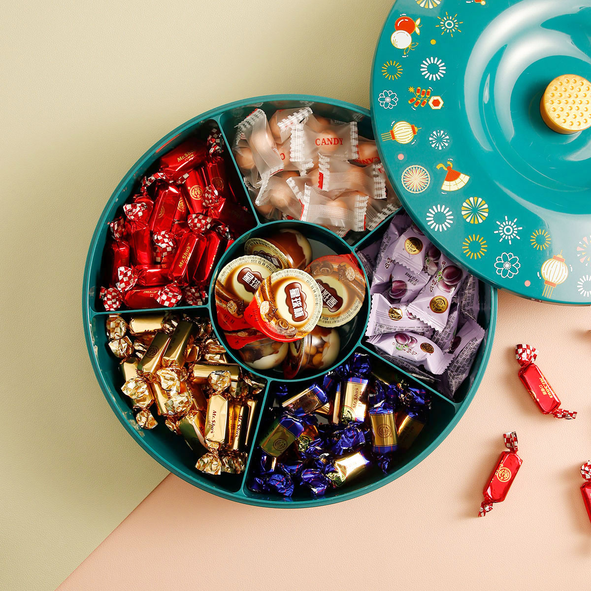 印花糖果盒小號(hào)/大號(hào)(紅蓋紅底 紅蓋黑底 綠蓋綠底)