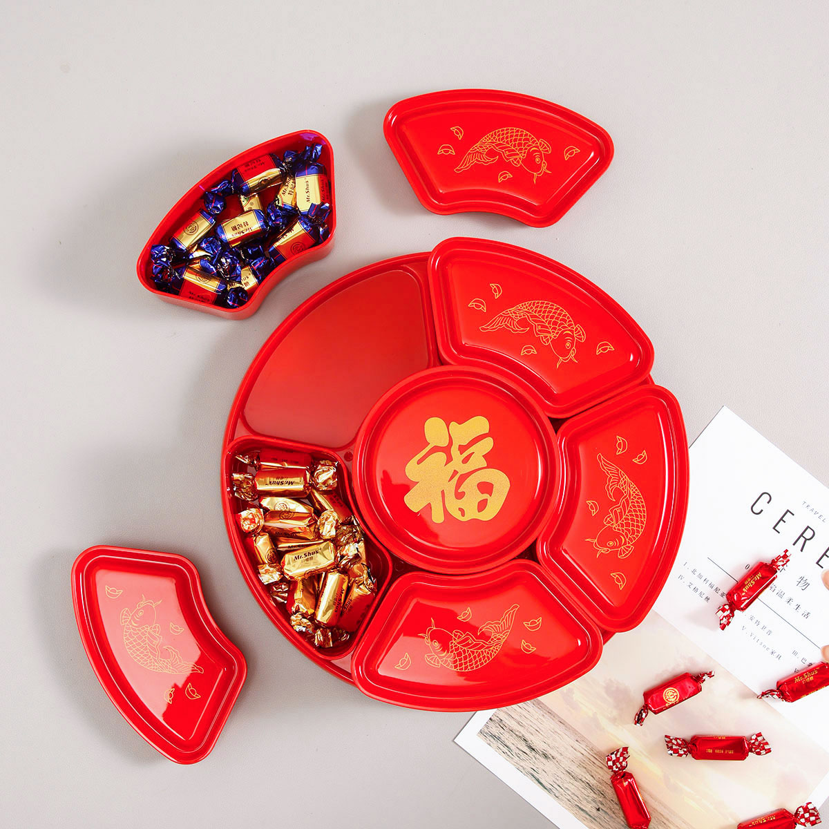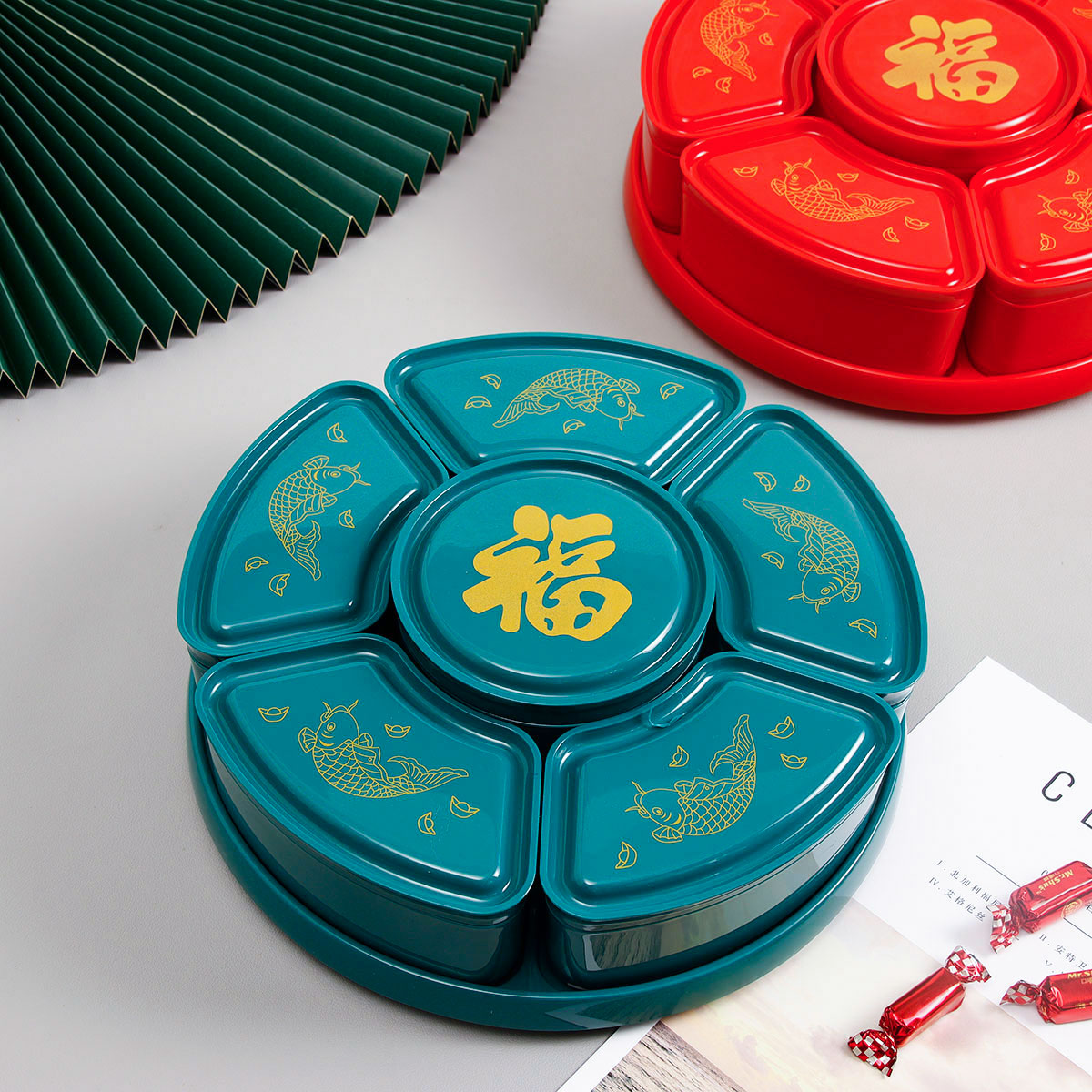 福魚旋轉(zhuǎn)糖果盒(紅/綠)