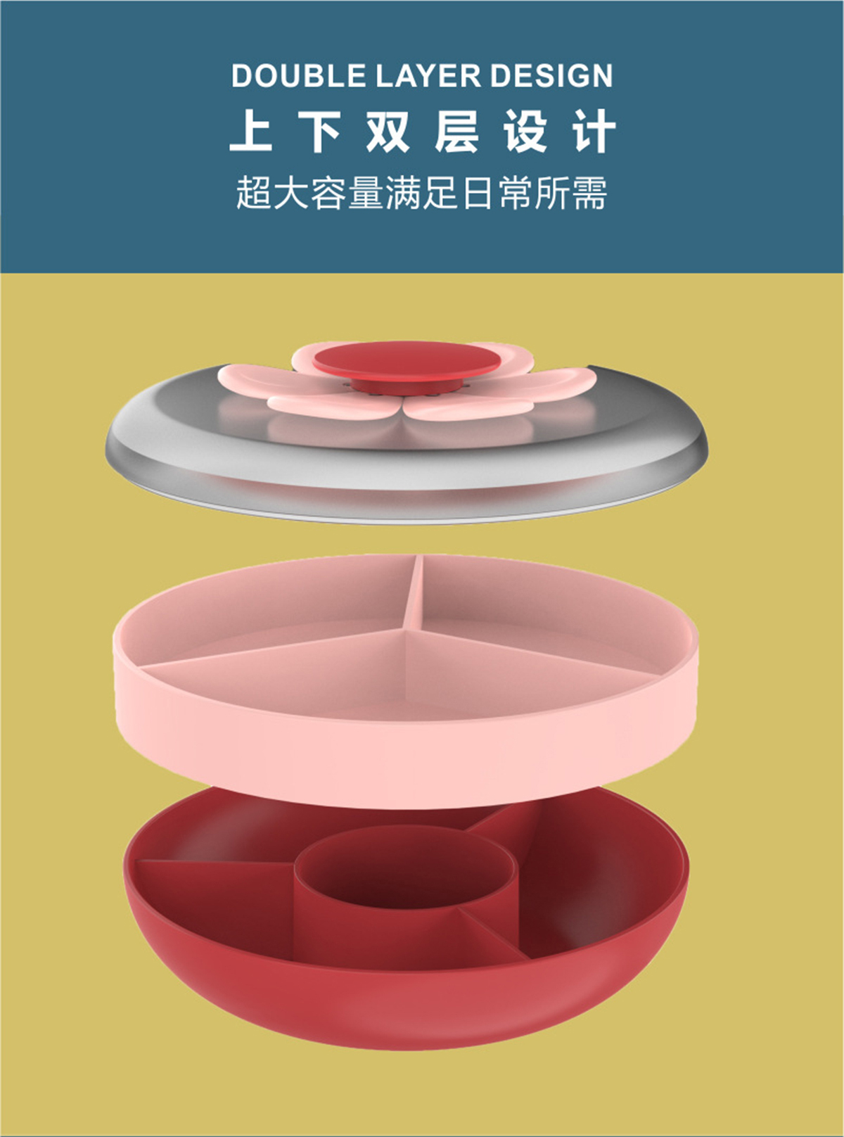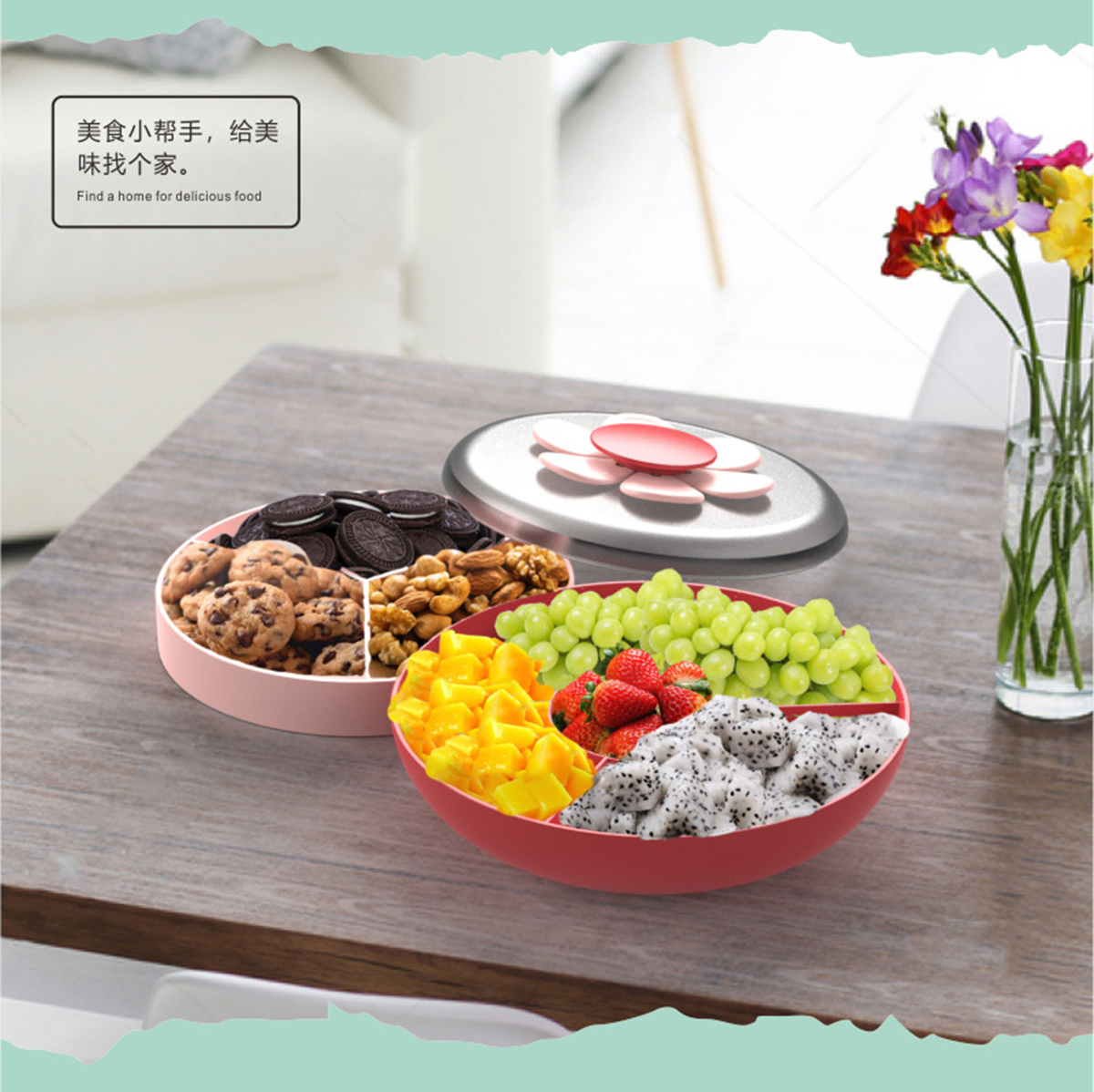 花瓣果叉雙層零食盒1.1L