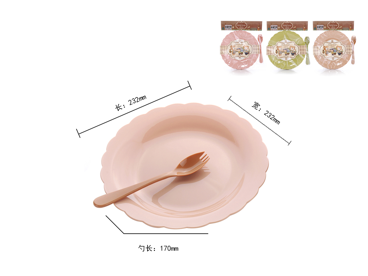 得力熊歐式大號(hào)花邊圓形餐盤(4pcs)( 配4pcs叉匙)