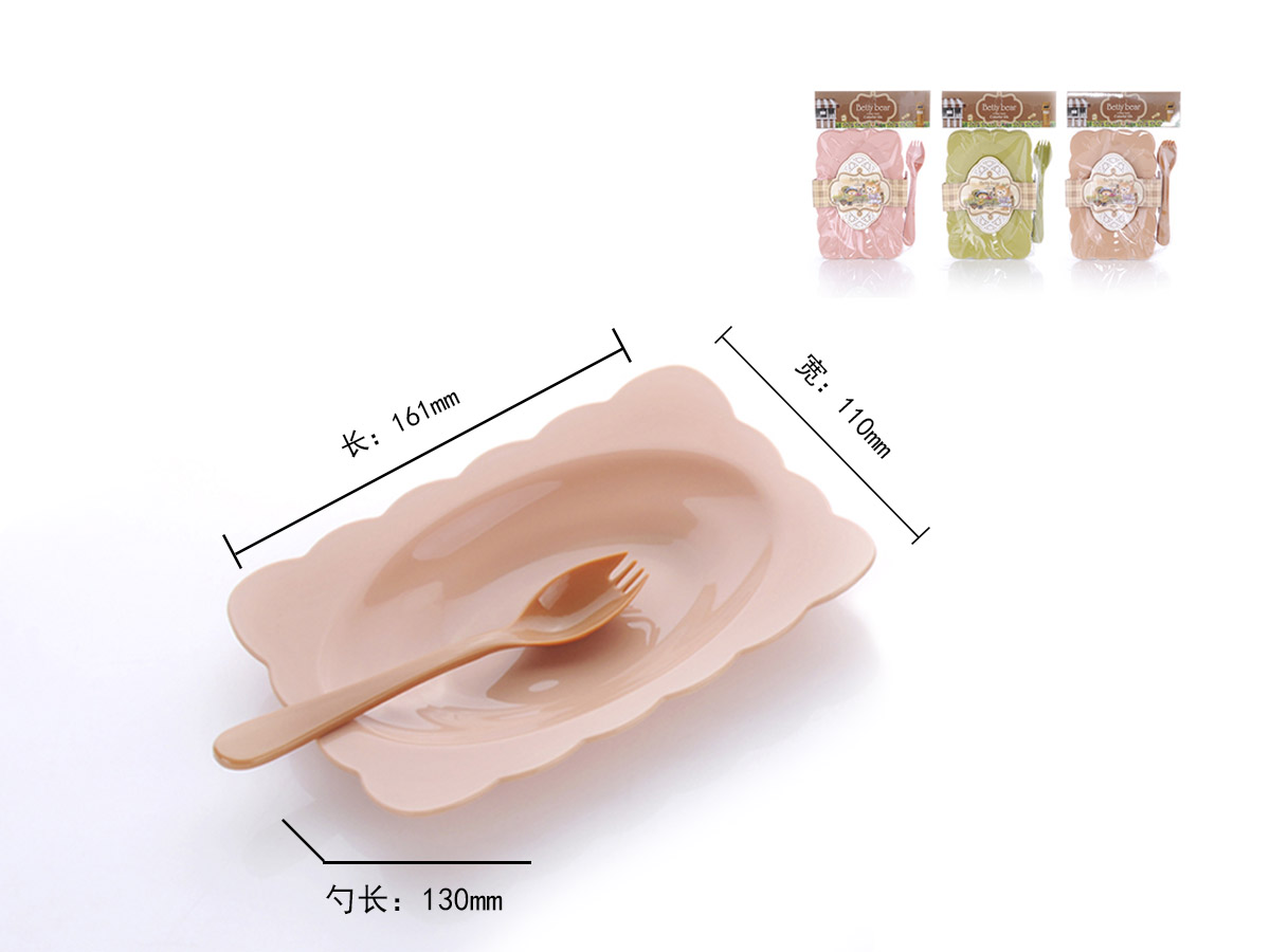 得力熊歐式小號花邊長方餐盤(4pcs)( 配4pcs叉匙)