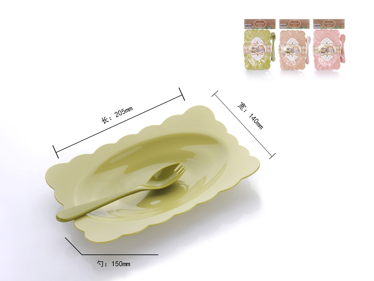 得力熊歐式中號(hào)花邊長(zhǎng)方餐盤(pán)(4pcs)( 配4pcs叉匙)