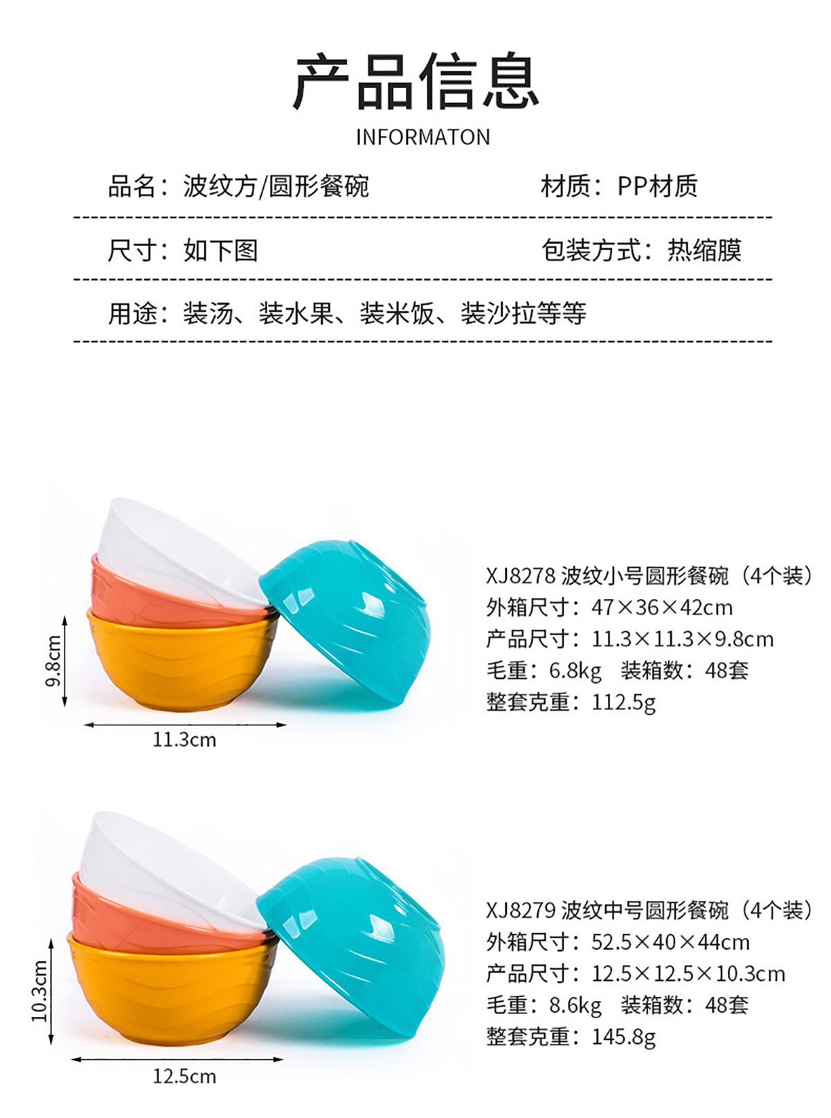 波紋圓形/方形餐碗 小號/中號/大號(4個裝)