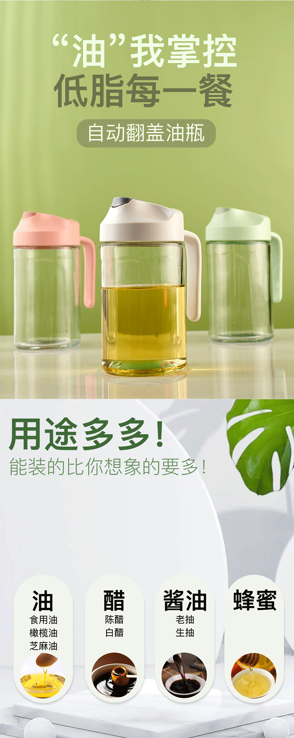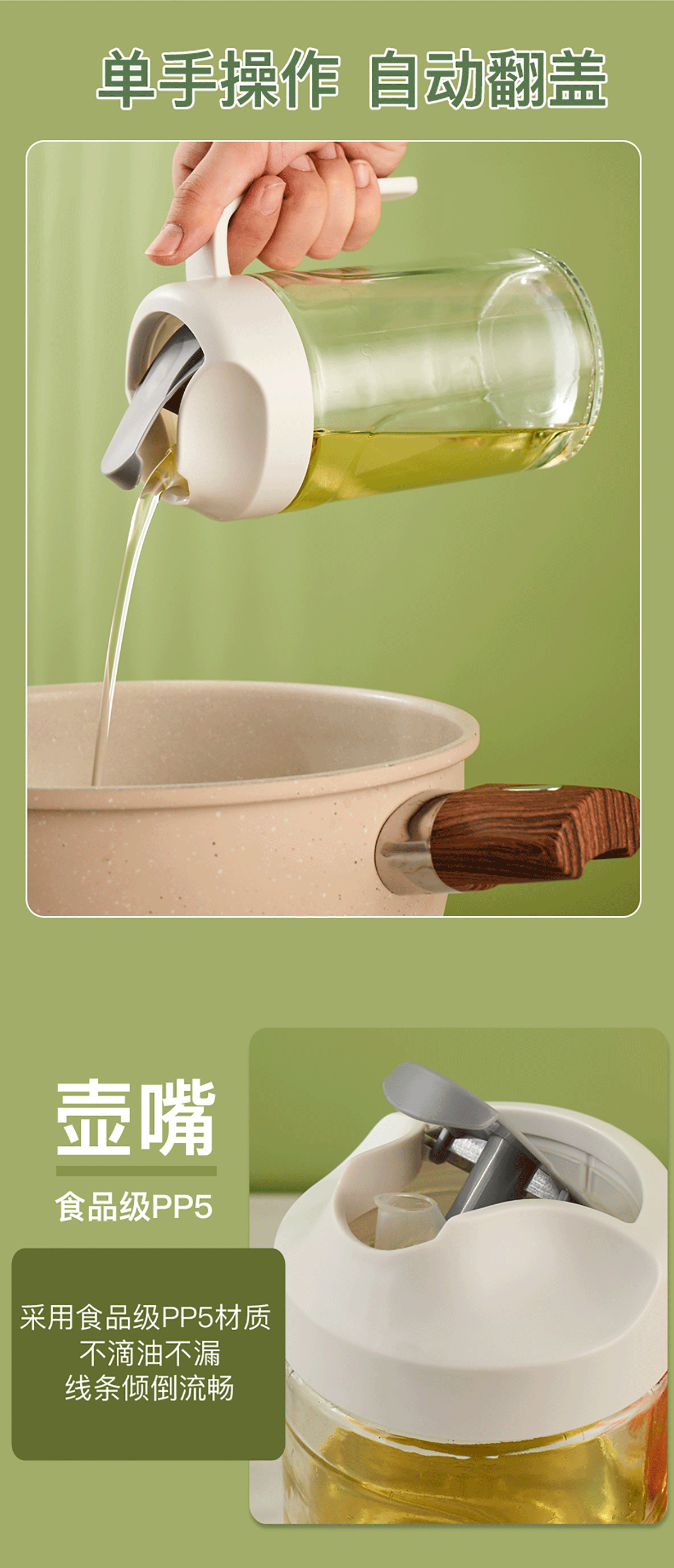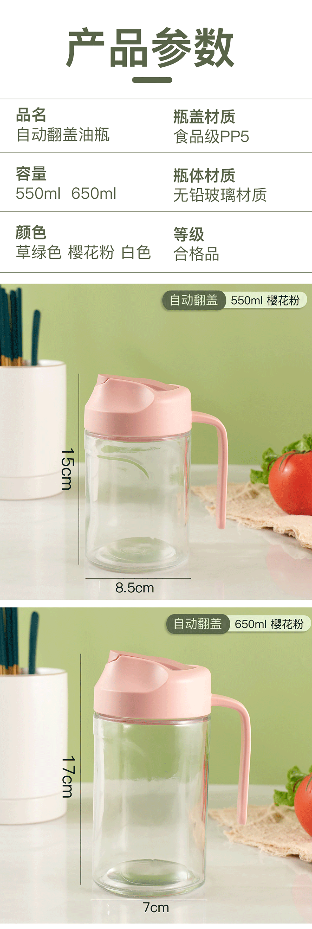 自動(dòng)翻蓋玻璃油壺550ml/650ml