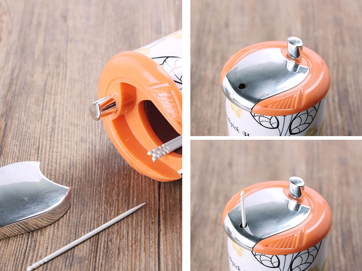 圓形自動牙簽筒