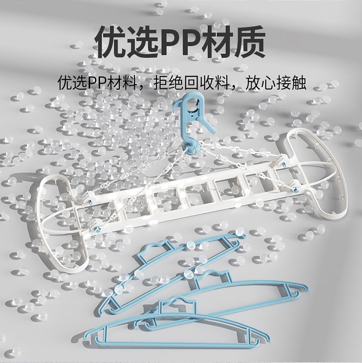 Size: 8衣架+12衣夾/折合:480*350*65mm 展開(kāi):700*380*125mm