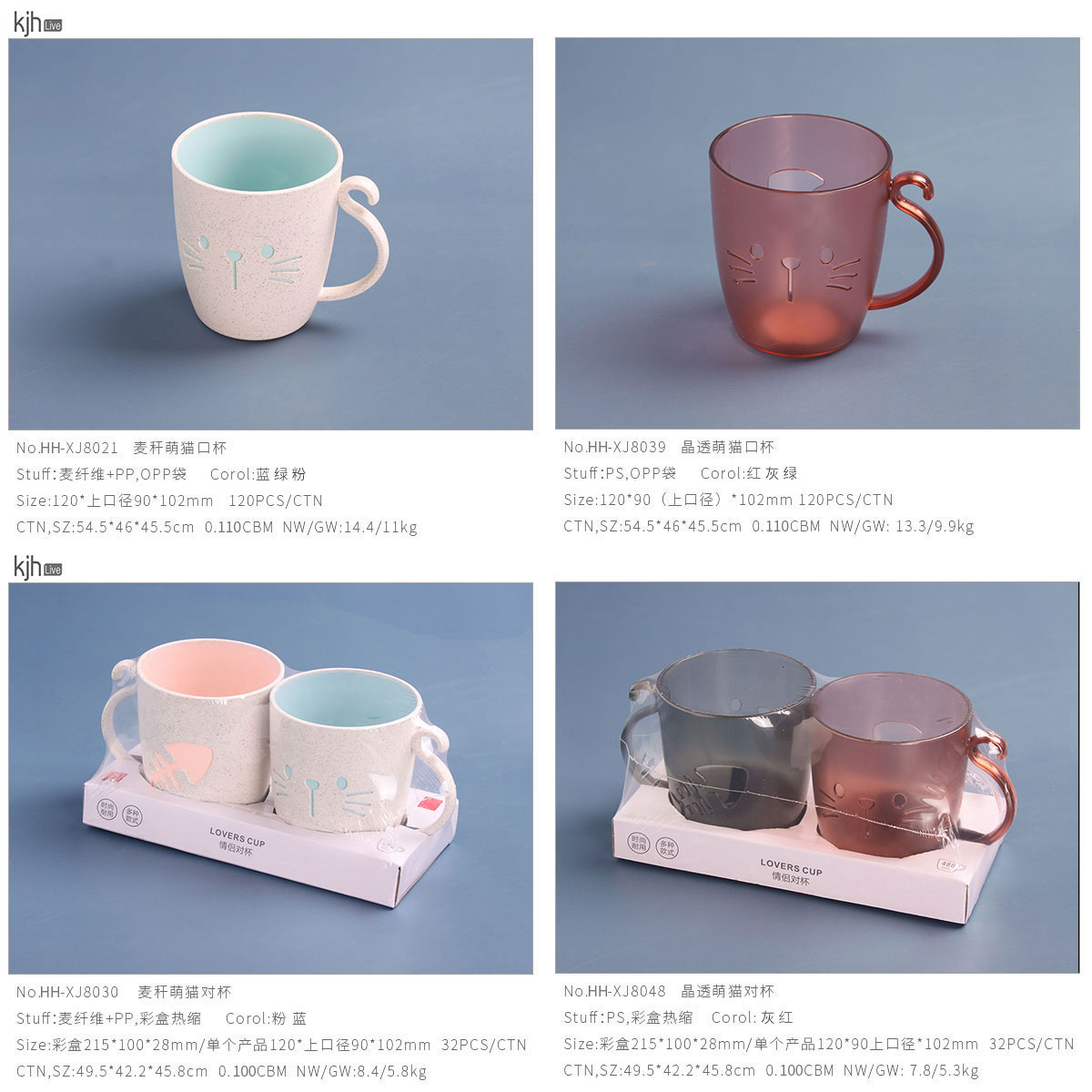 麥稈萌貓對杯(480ml):彩盒215*100*28mm/單個產(chǎn)品120*上口徑90*102mm