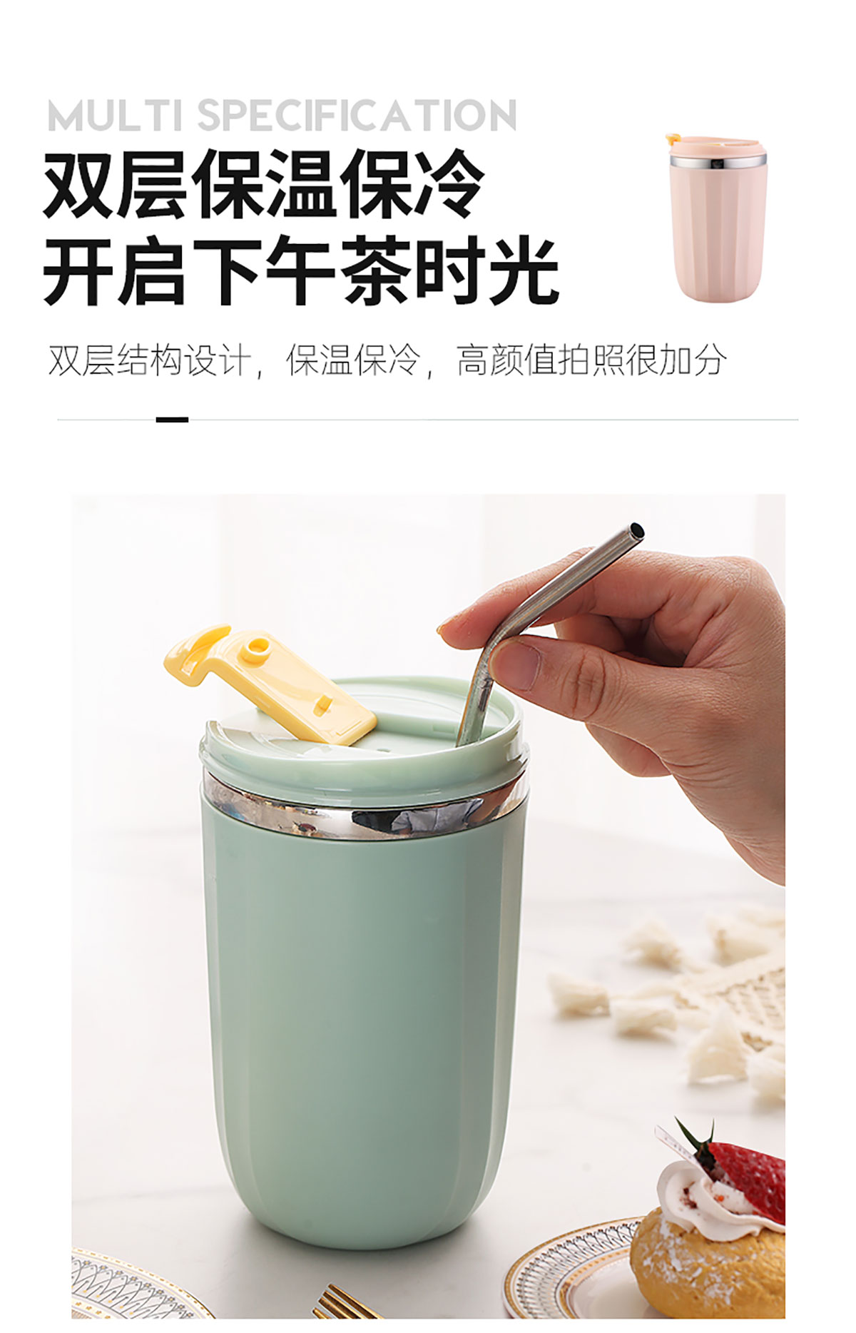 500ml馬卡龍翻扣304不銹鋼馬克杯