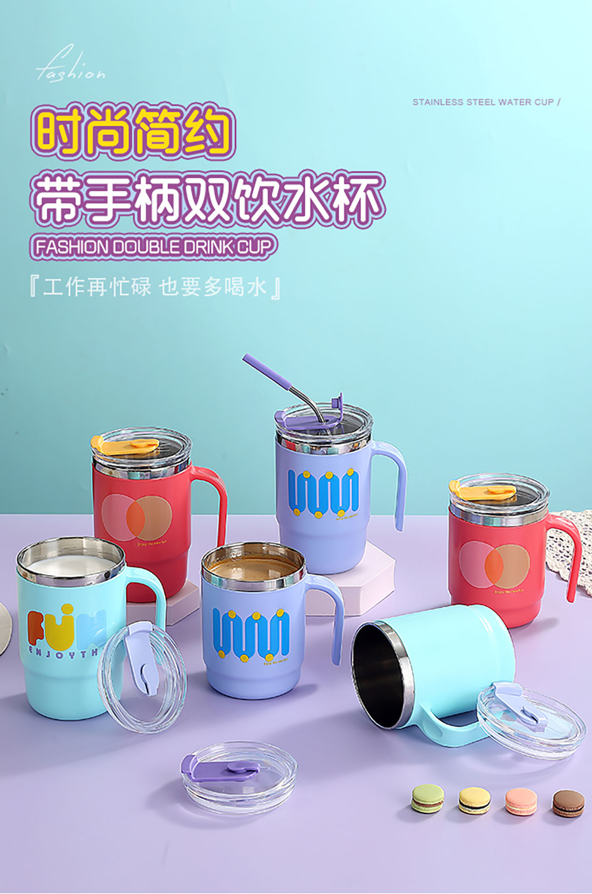 400ml/500ml時(shí)尚不銹鋼雙飲杯(配不銹鋼吸管)