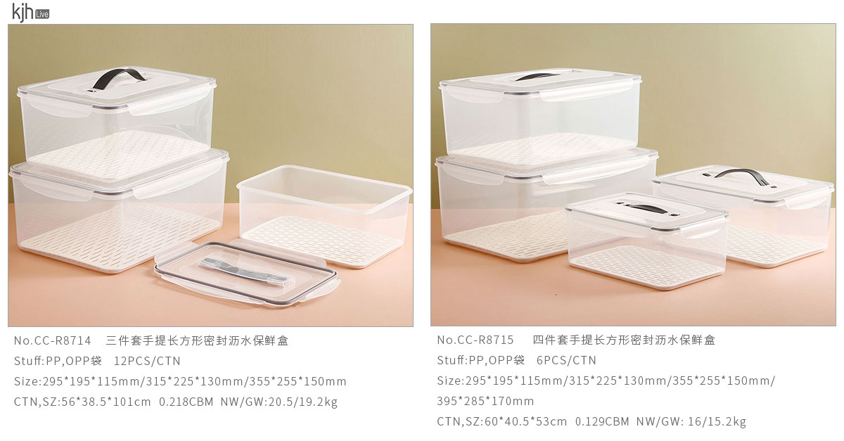 三件套/四件套手提長(zhǎng)方形密封瀝水保鮮盒