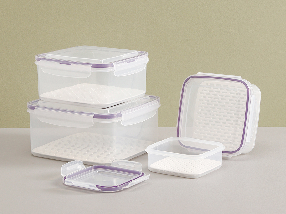 美時(shí)方形密封瀝水保鮮盒(500ml/1100ml/2100ml/3380ml/5250ml)