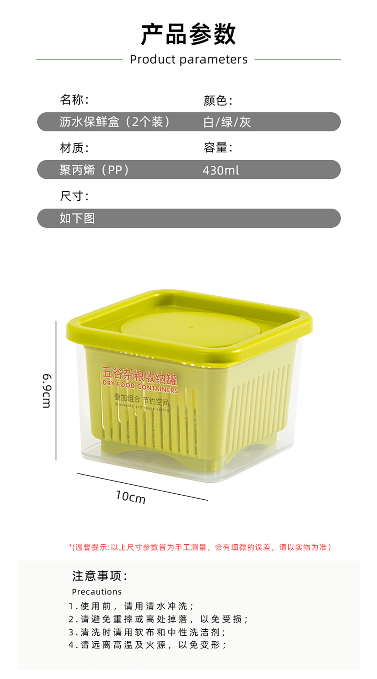 瀝水保鮮盒兩件套430ml×2