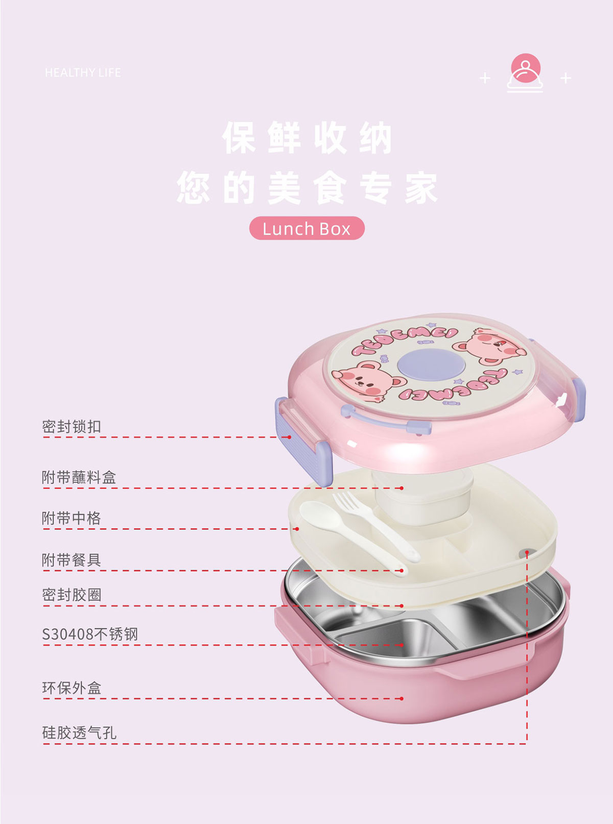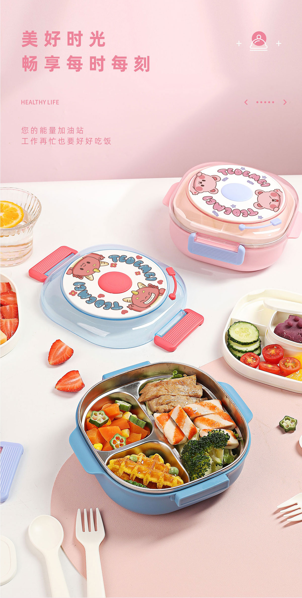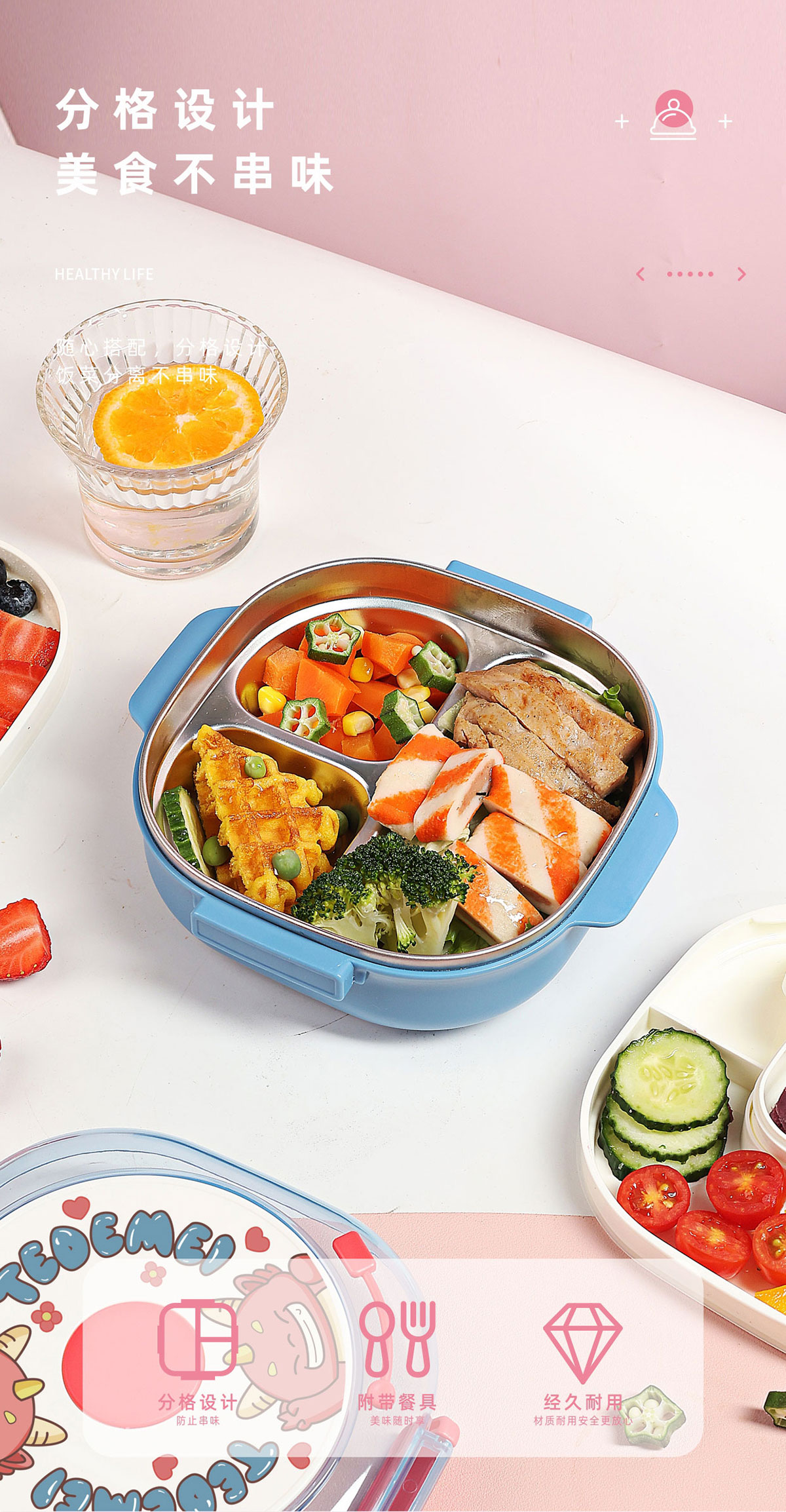 童趣不銹鋼分格餐盒