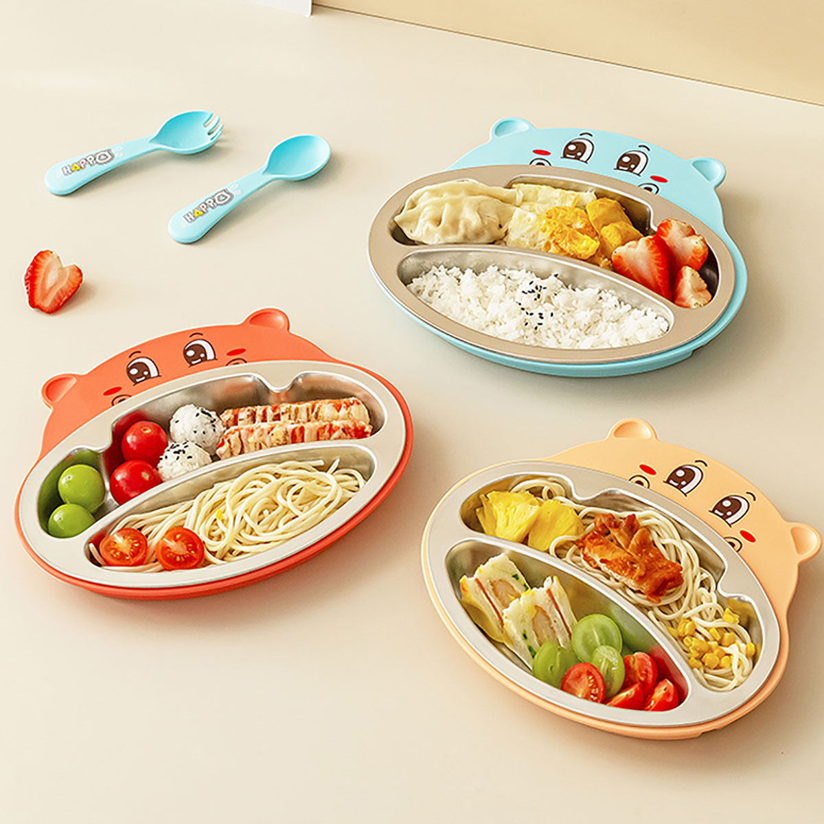 嘟嘟河馬不銹鋼套裝兒童餐具