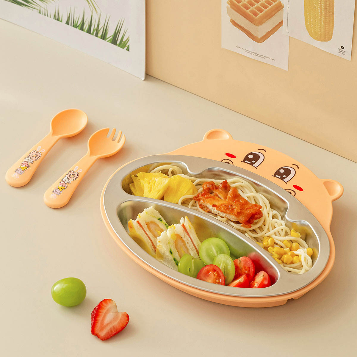 Size: 餐盤258*215*40mm/碗160*110*80mm/杯140*80*83mm/勺叉125mm