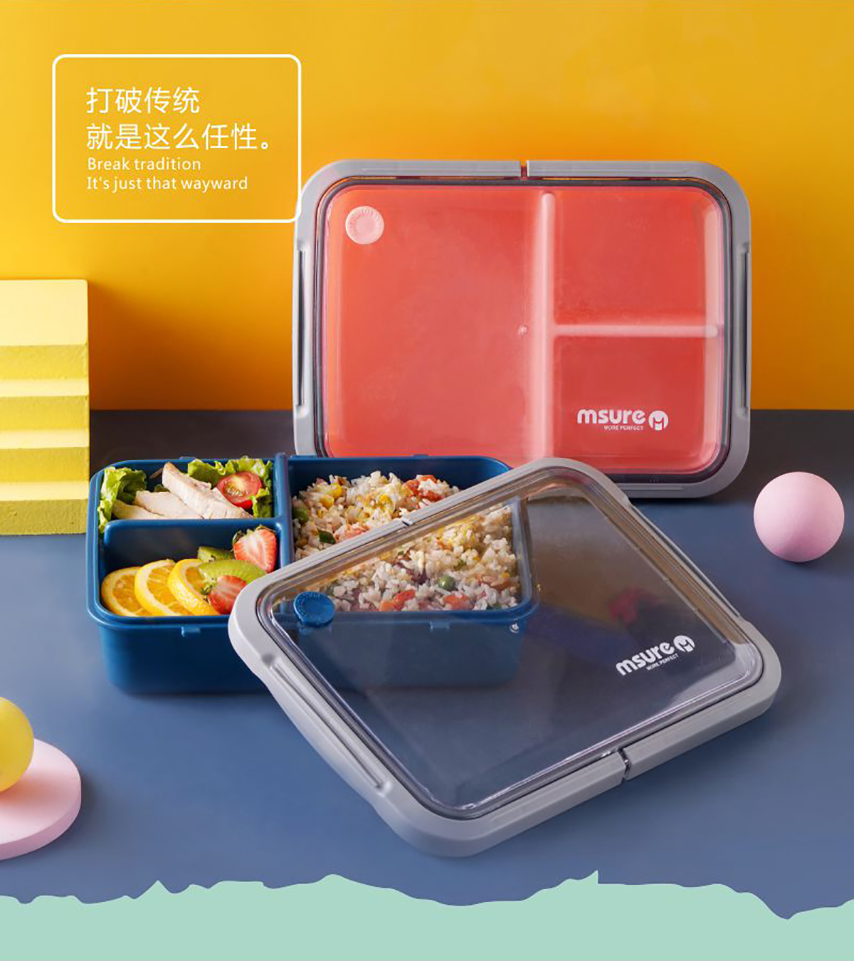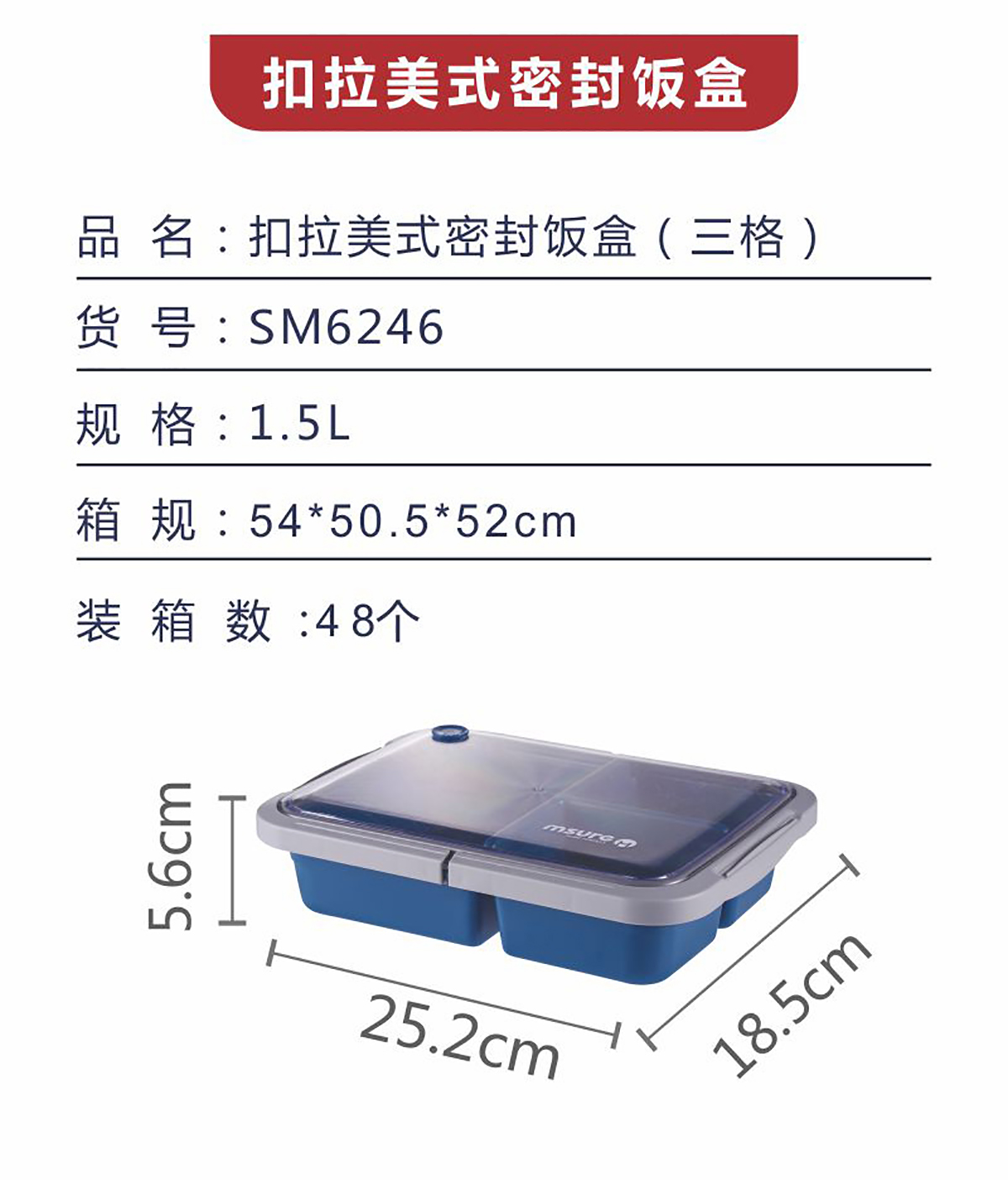 扣拉美式密封飯盒(三格)1.5L