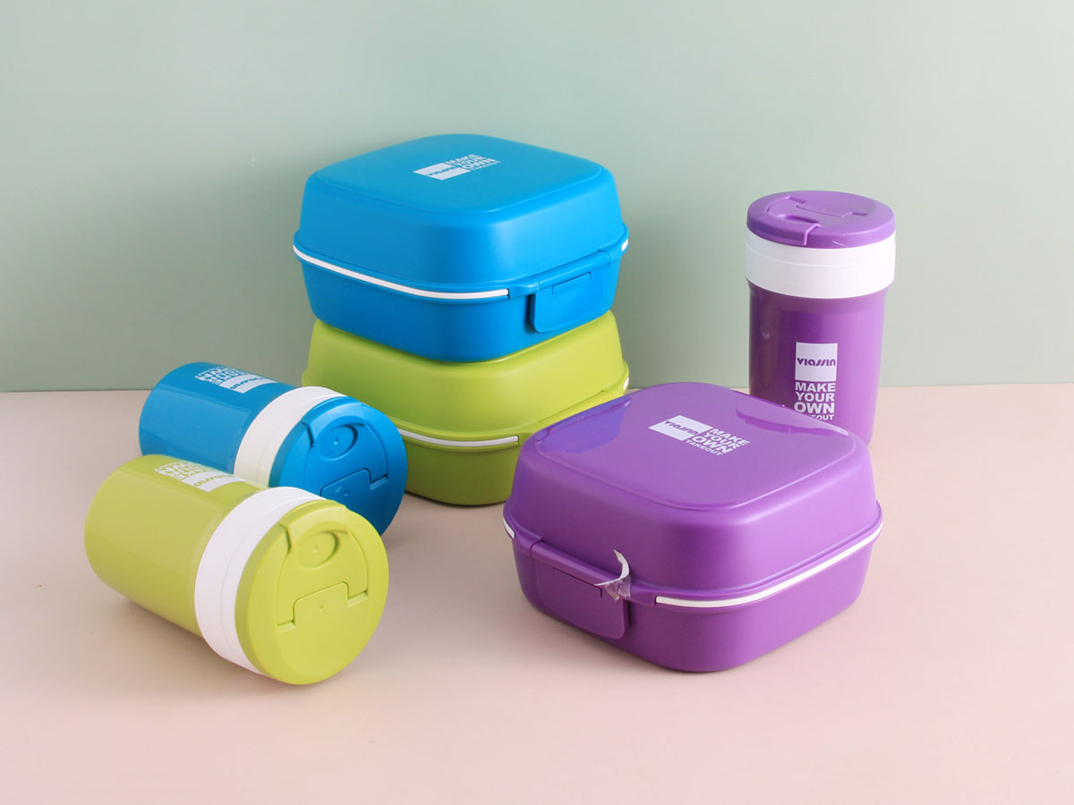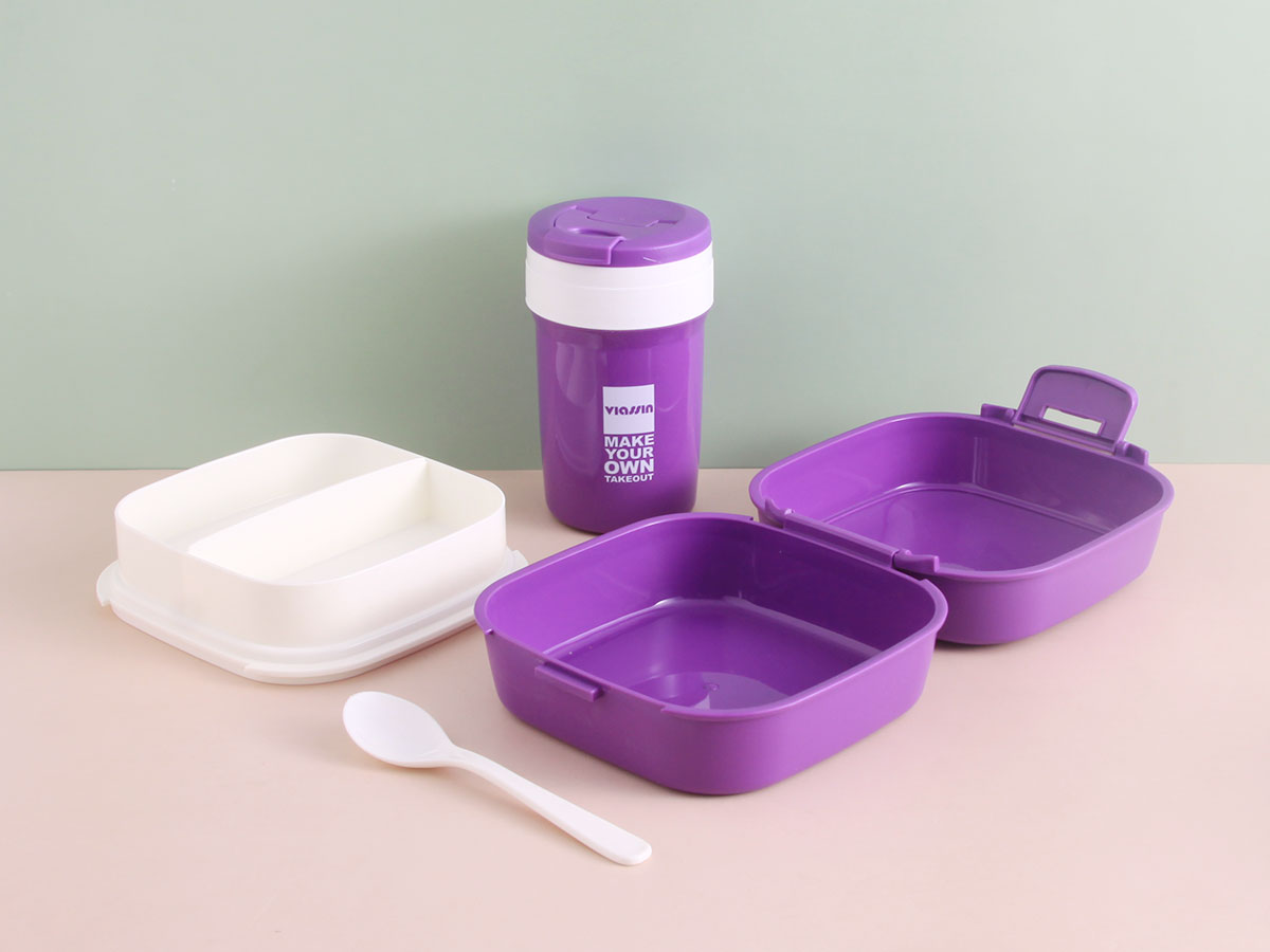 旋彩雙層餐盒(正方形)+隨手杯套裝1L+0.35L