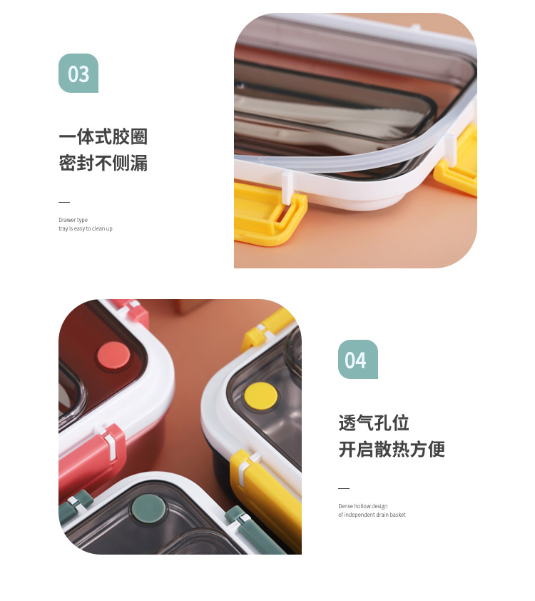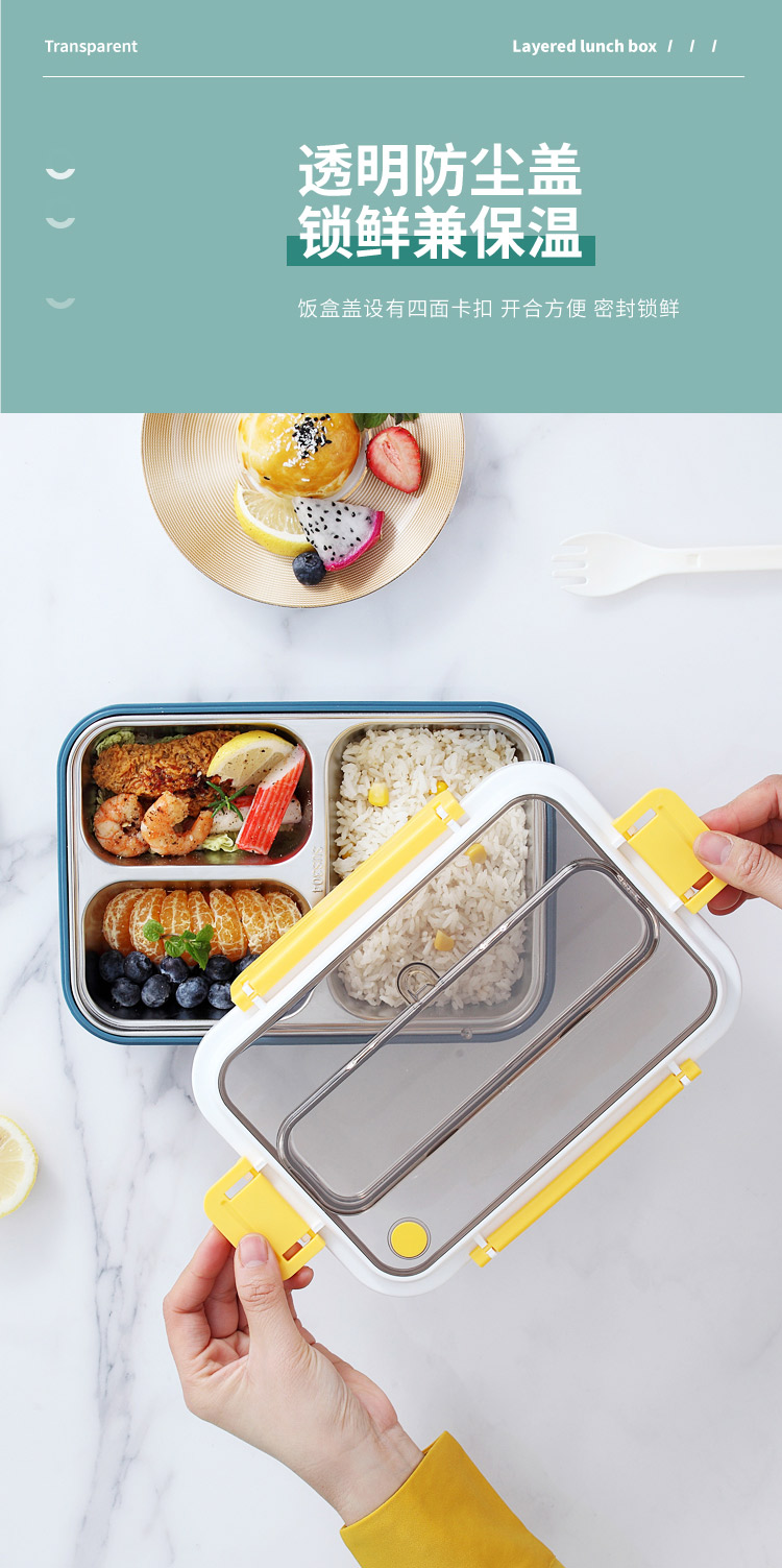 風味餐具格不銹鋼四扣飯盒