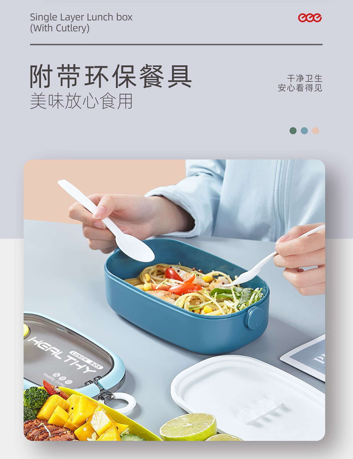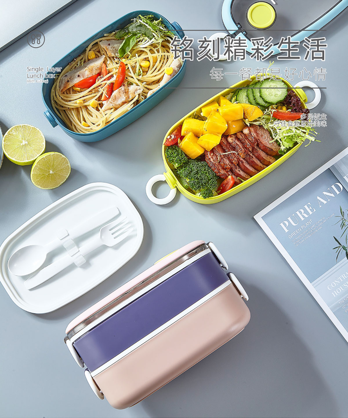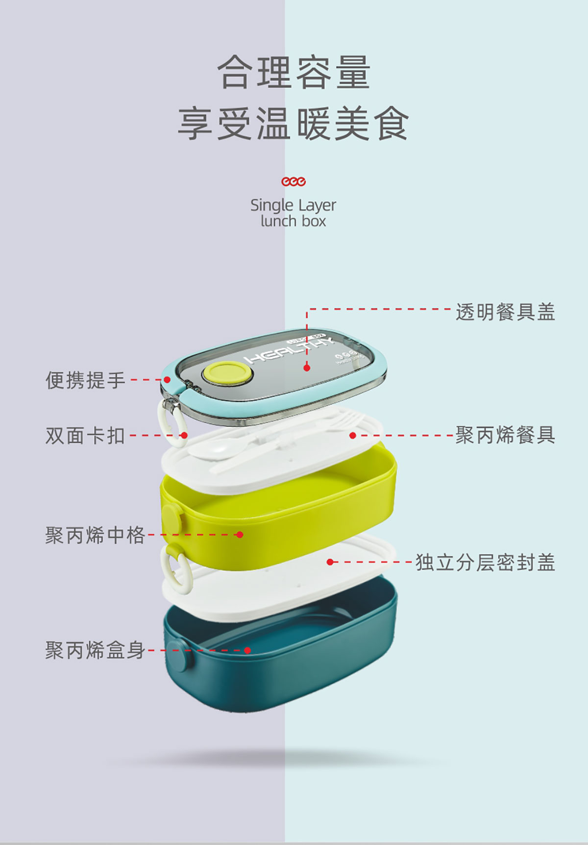 單層/雙層塑料便攜餐盒(帶餐具)