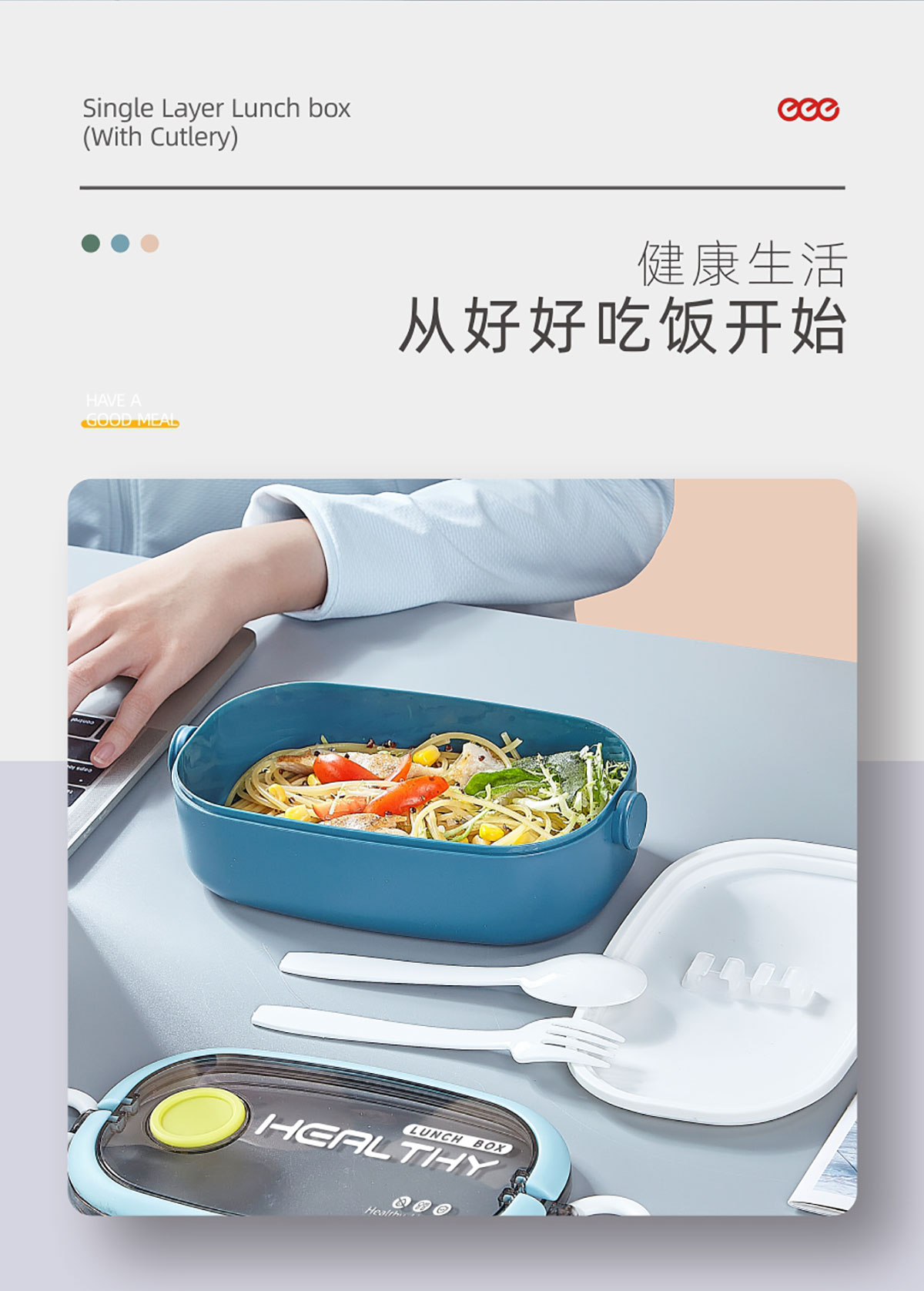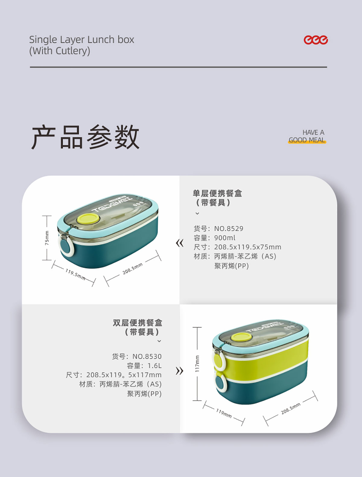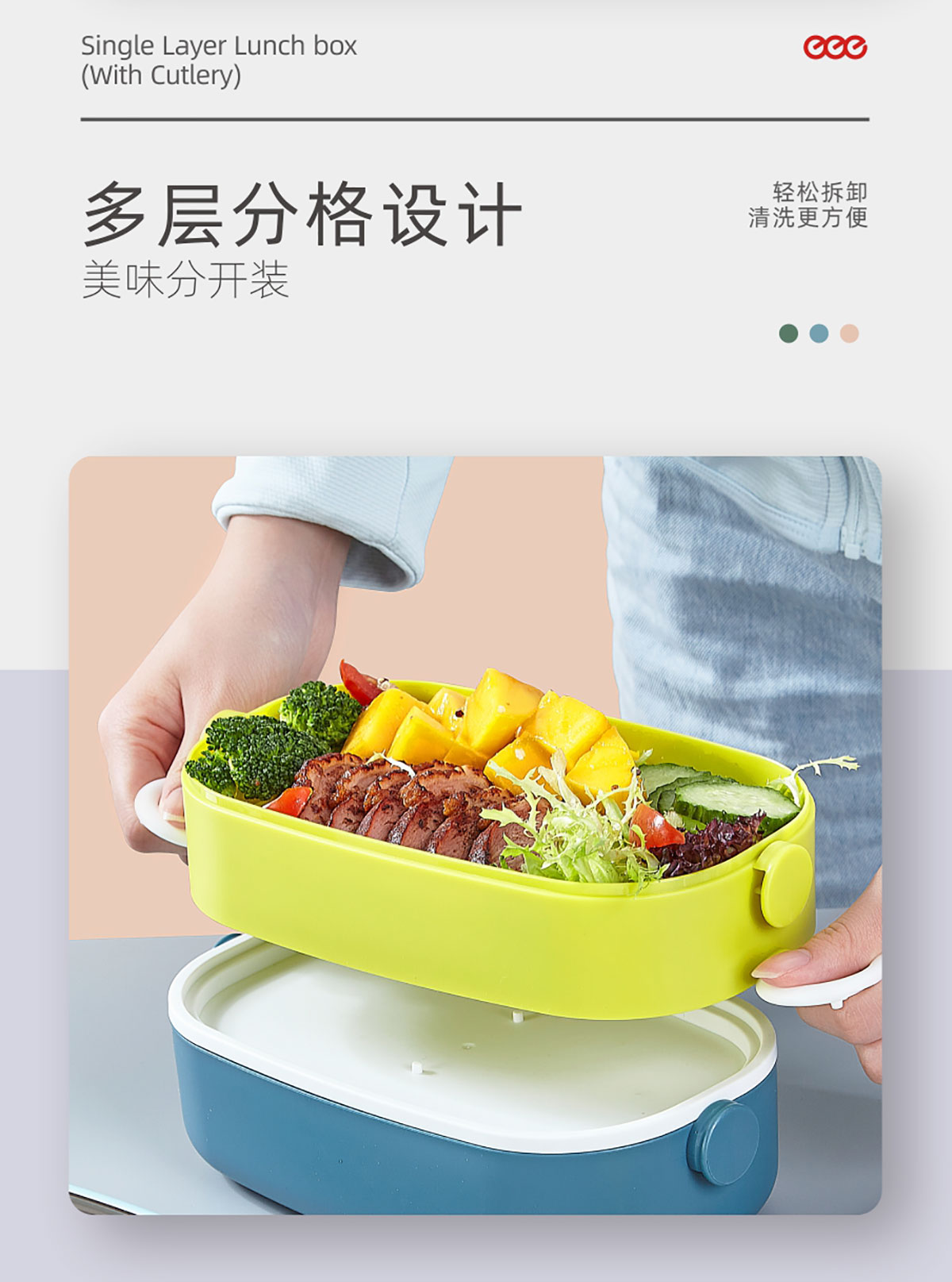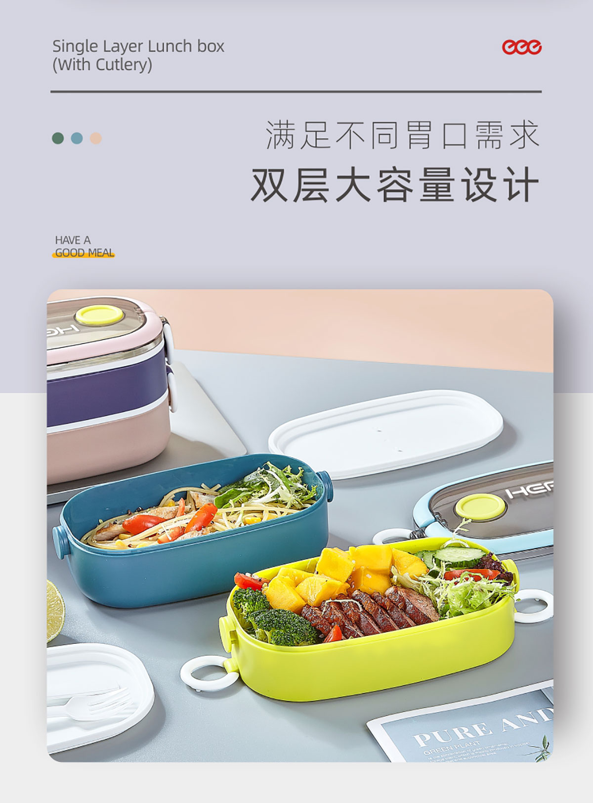 單層/雙層塑料便攜餐盒(帶餐具)