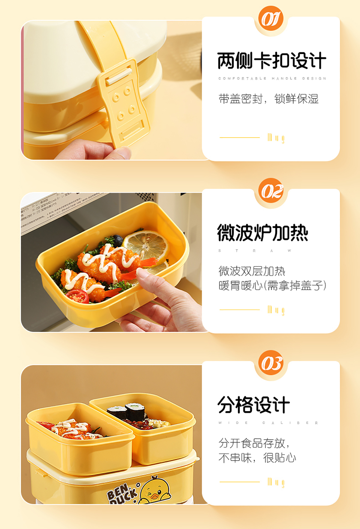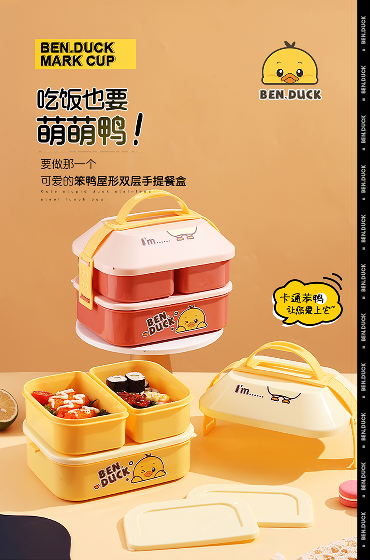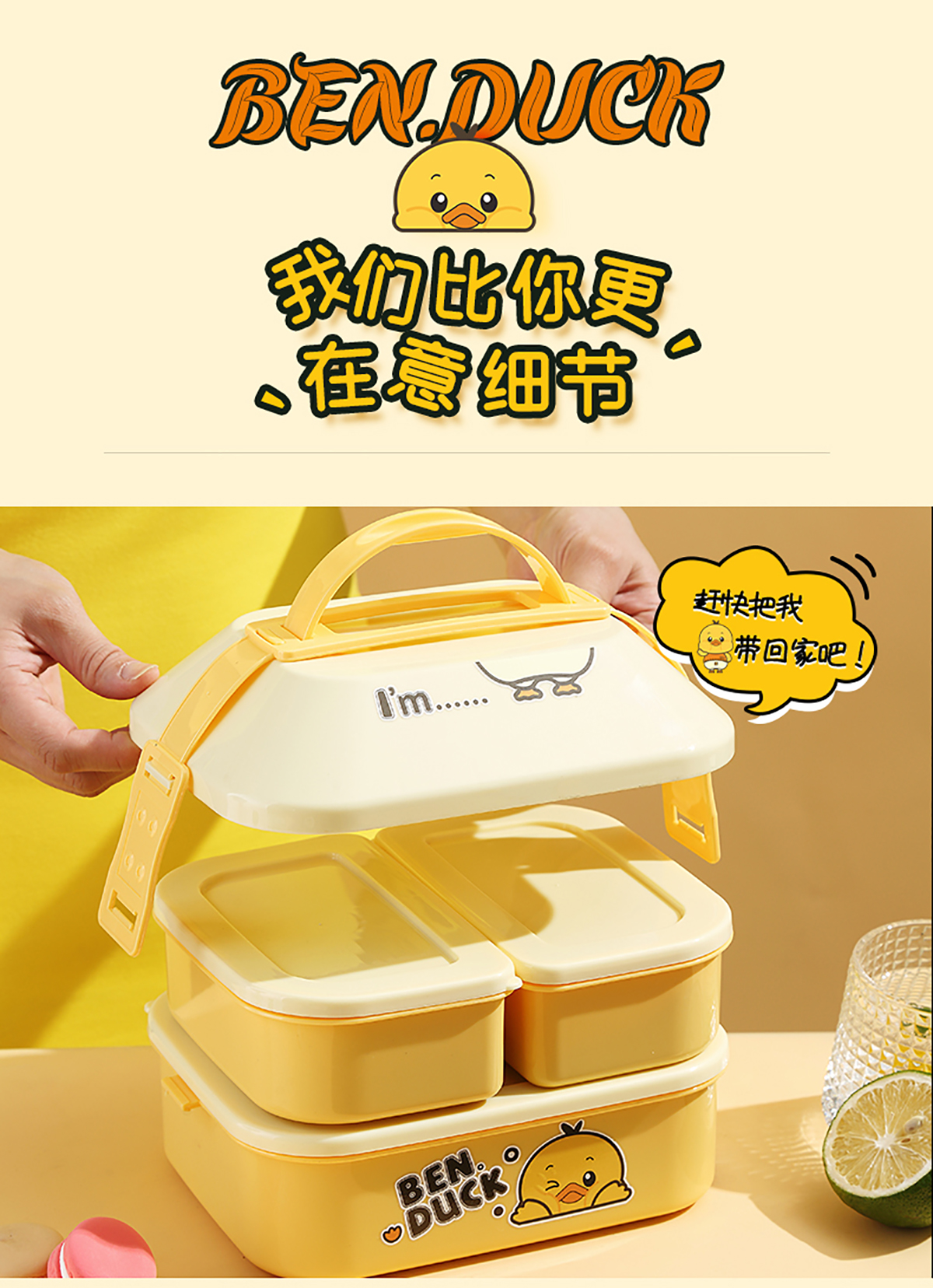 笨鴨2.5L屋形雙層手提餐盒(配PP勺叉)(1400ml+550mlx2)