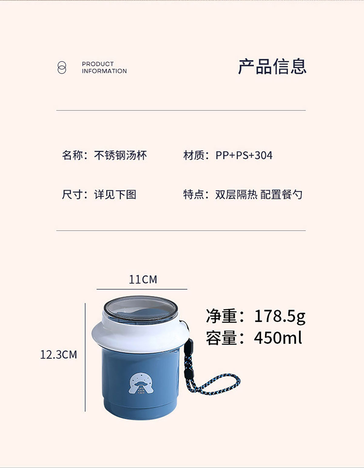 Stuff:PP+PS+304不銹鋼內(nèi)膽+密封硅膠圈/彩盒+熱縮膜