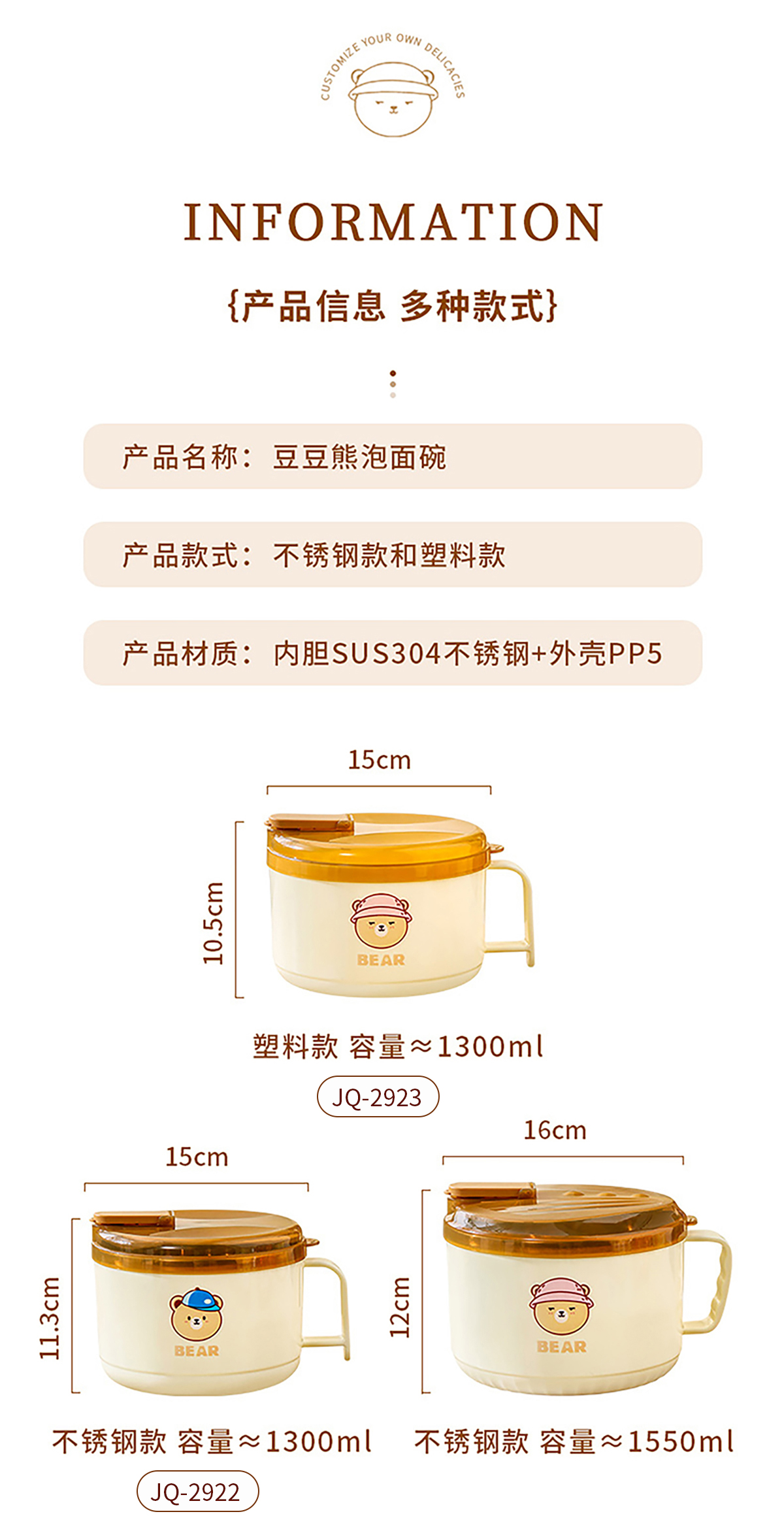 Size: JQ-2922:150*113mm/不銹鋼款1300ml