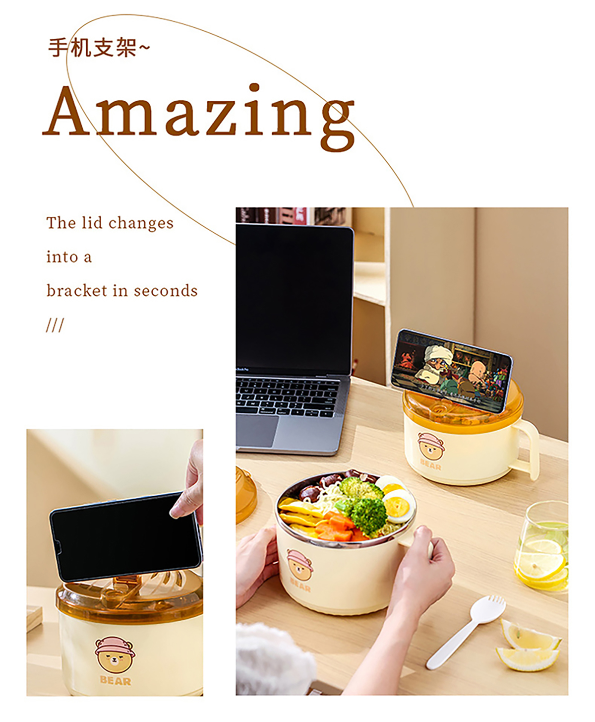 小號逗逗熊304不銹鋼/塑料泡面碗 [男孩/女孩]