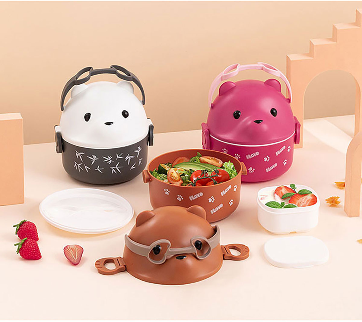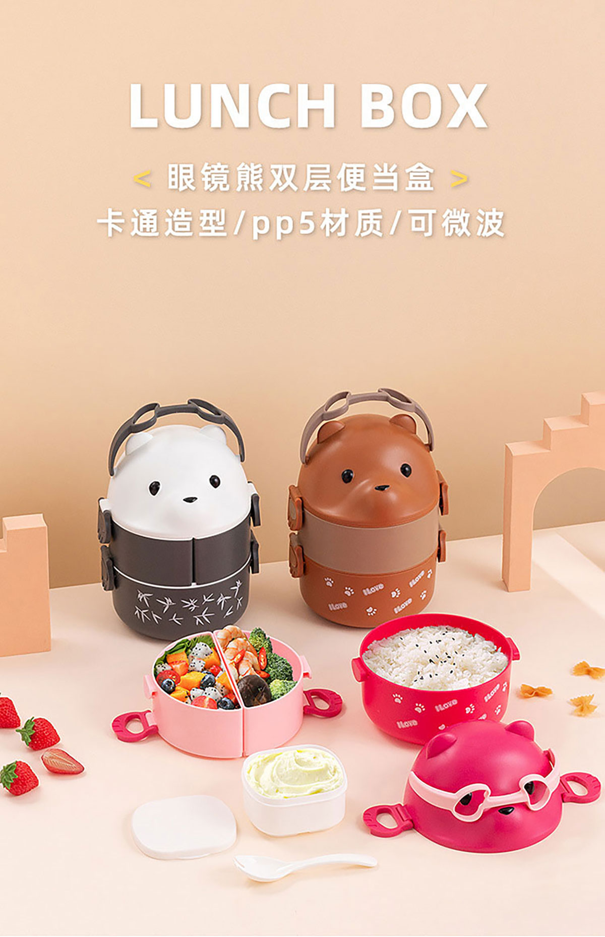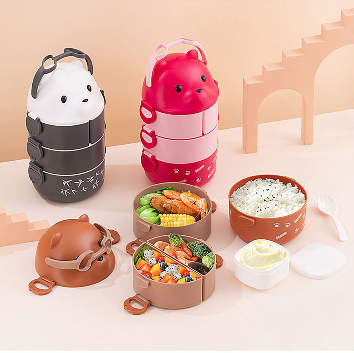眼鏡熊手提飯盒/分格飯盒(雙層/三層/湯碗)
