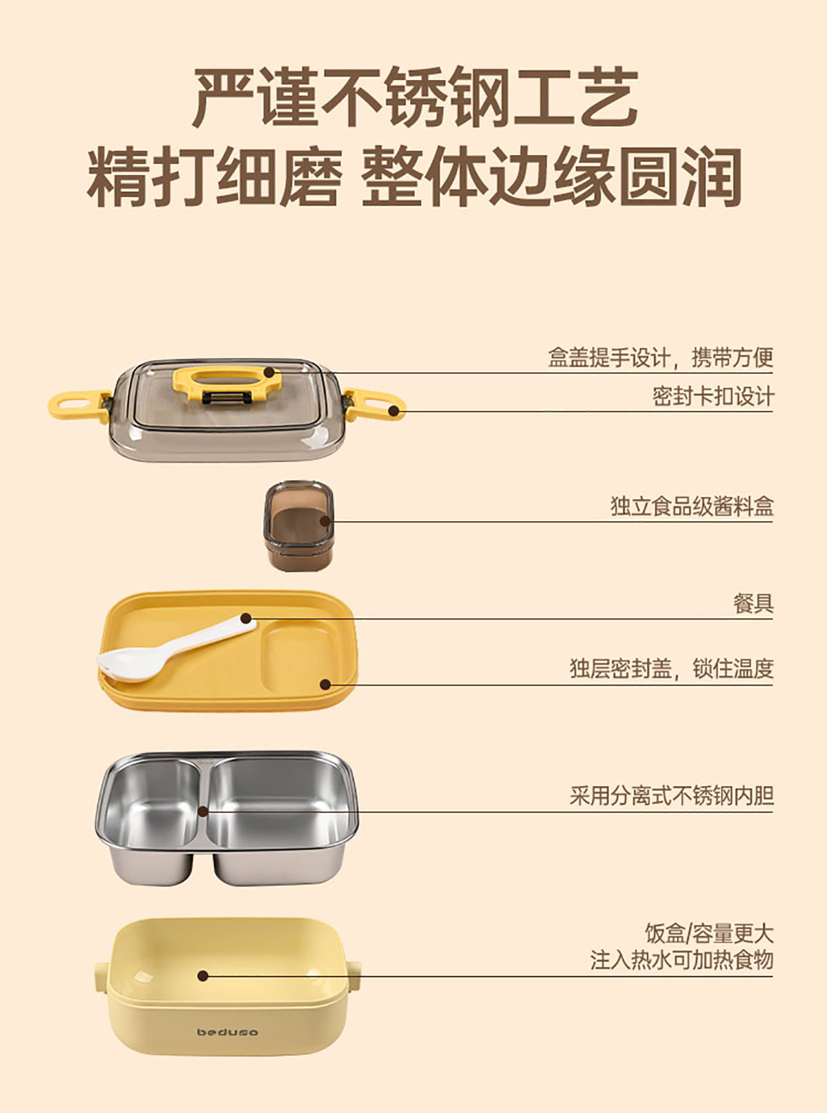 長方形分格不銹鋼便當(dāng)盒500ml