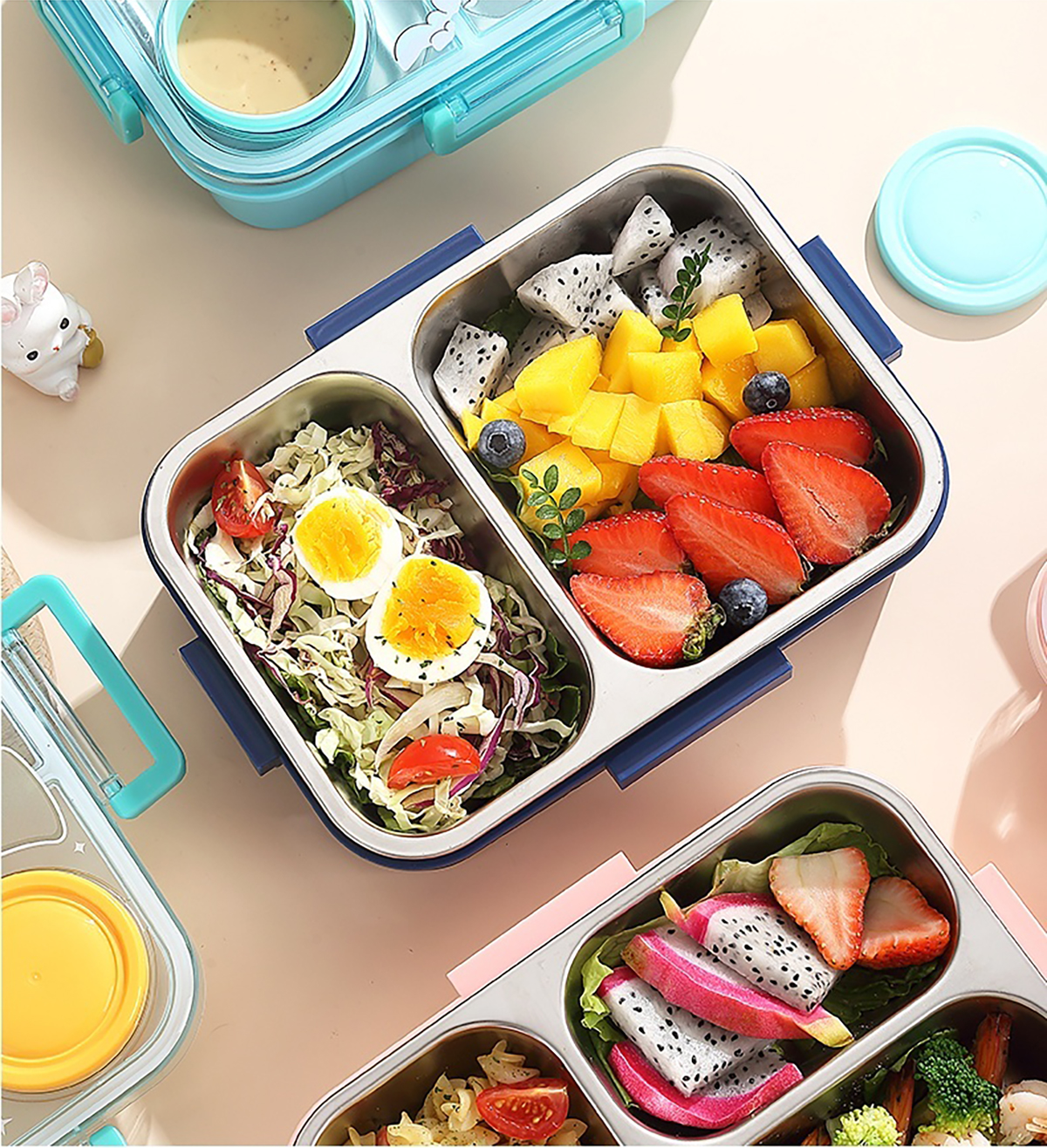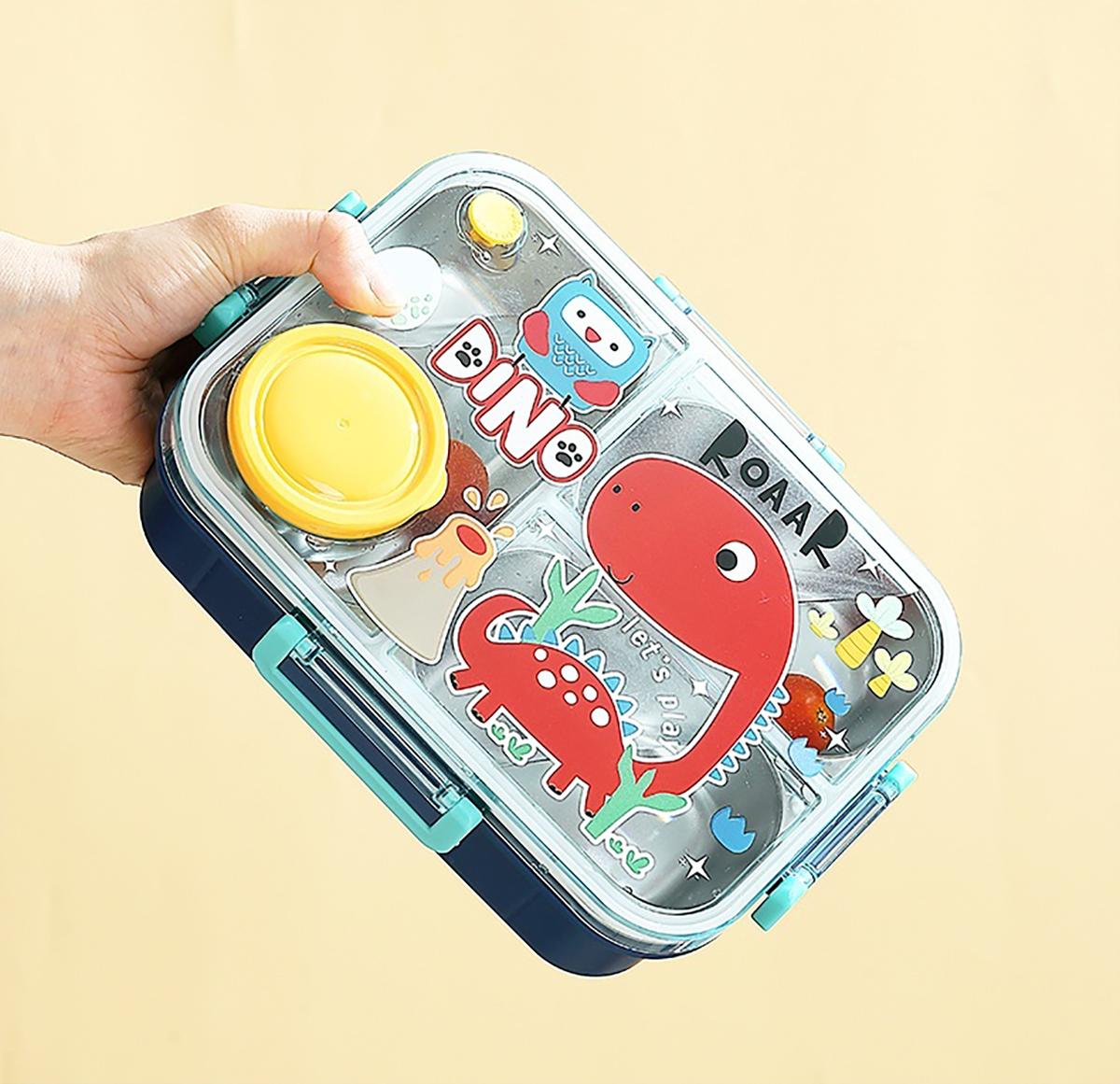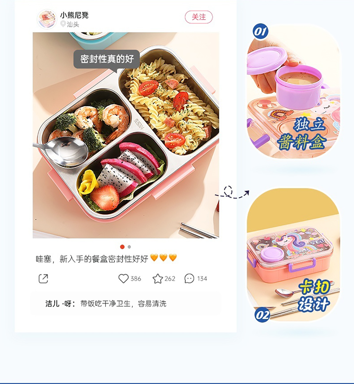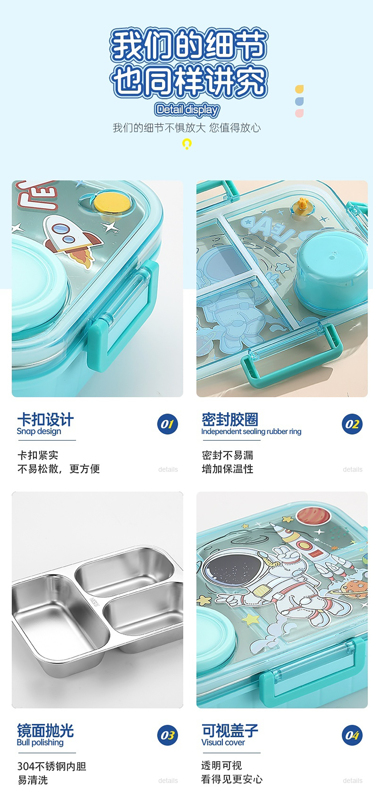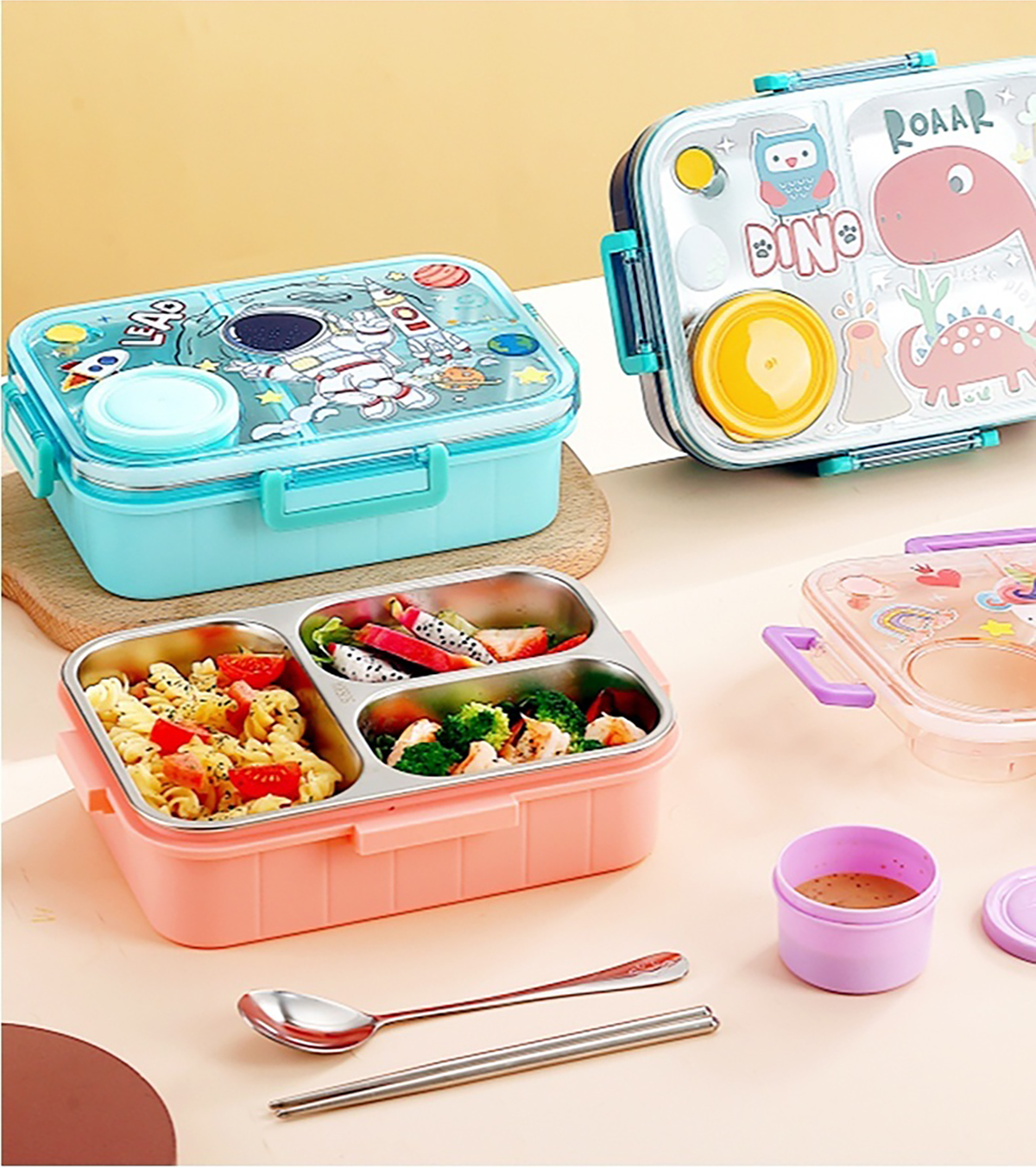 幻彩卡通獨(dú)立密封餐盒(2格800ml/3格750ml配不銹鋼勺筷+PP醬杯80ml)