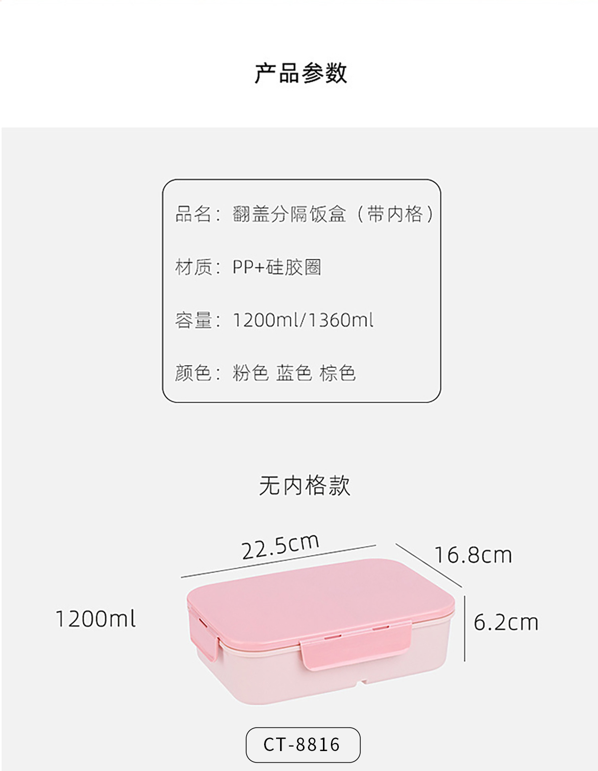 Size: CT-8816:225*168*62mm/1200ml