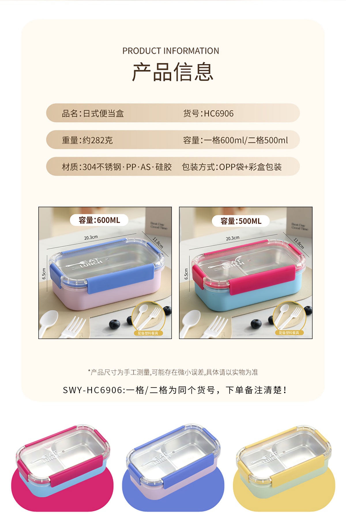 Size: 一格:203*118*65mm/600ml
