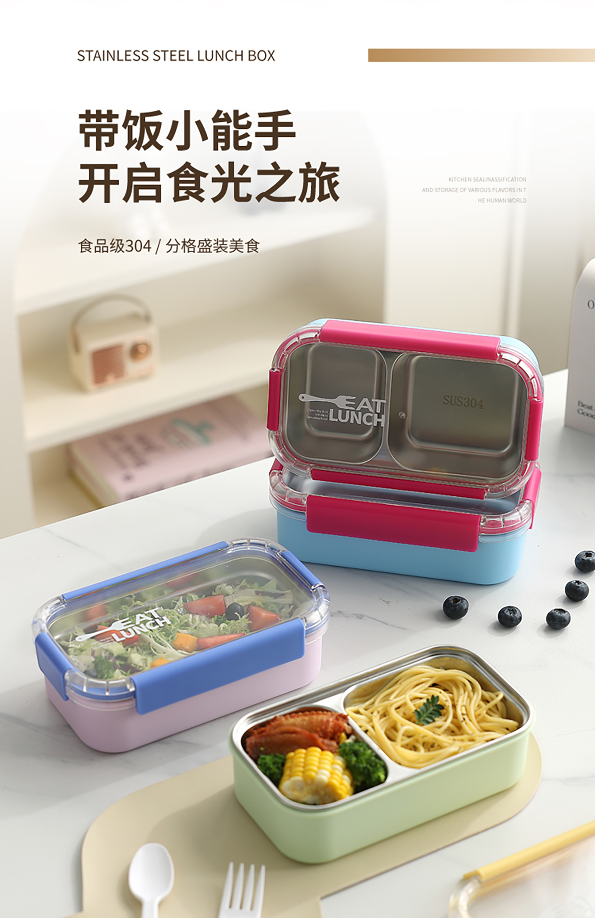 日式便當(dāng)盒不銹鋼款一格600ml/二格500ml