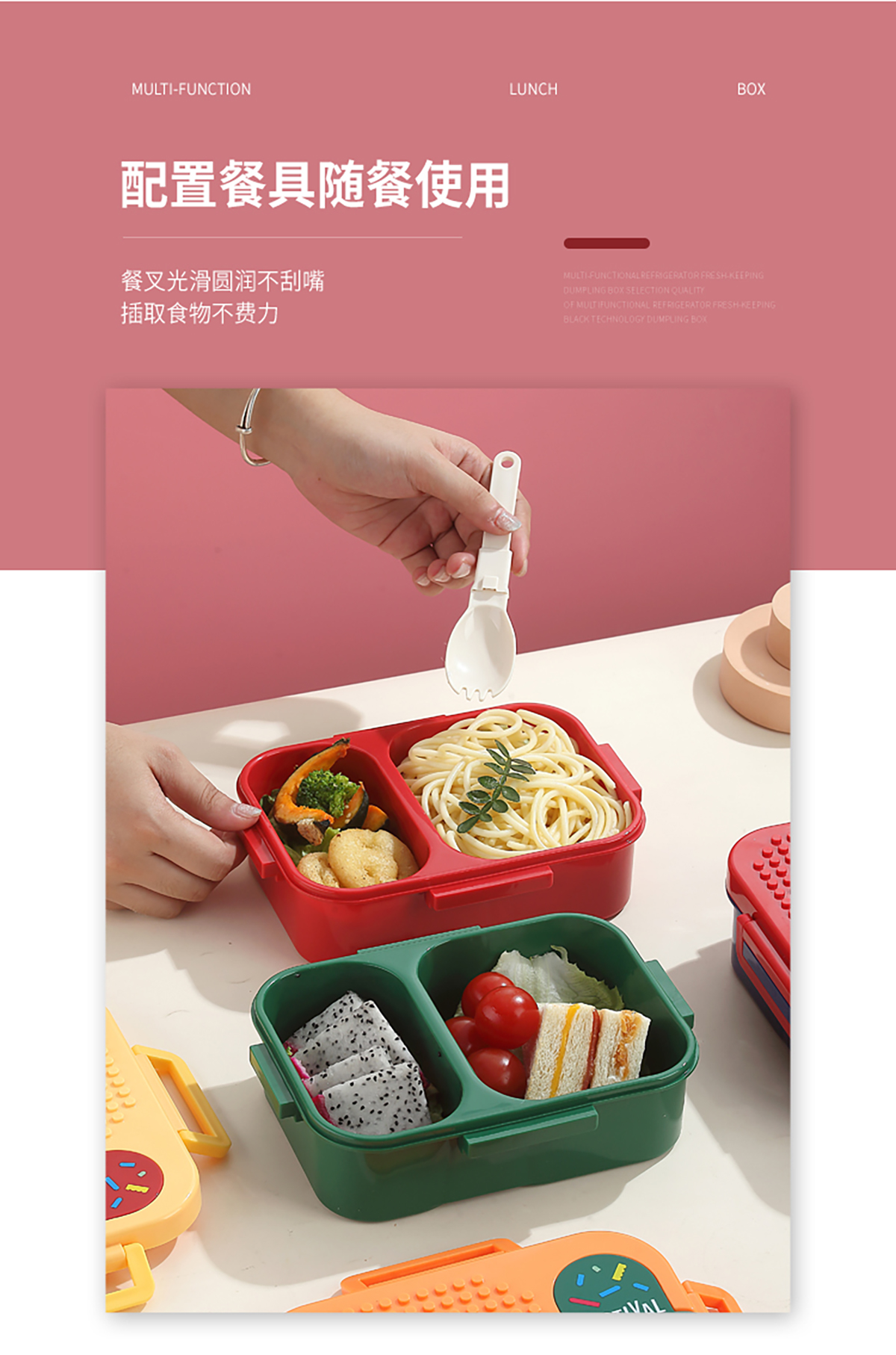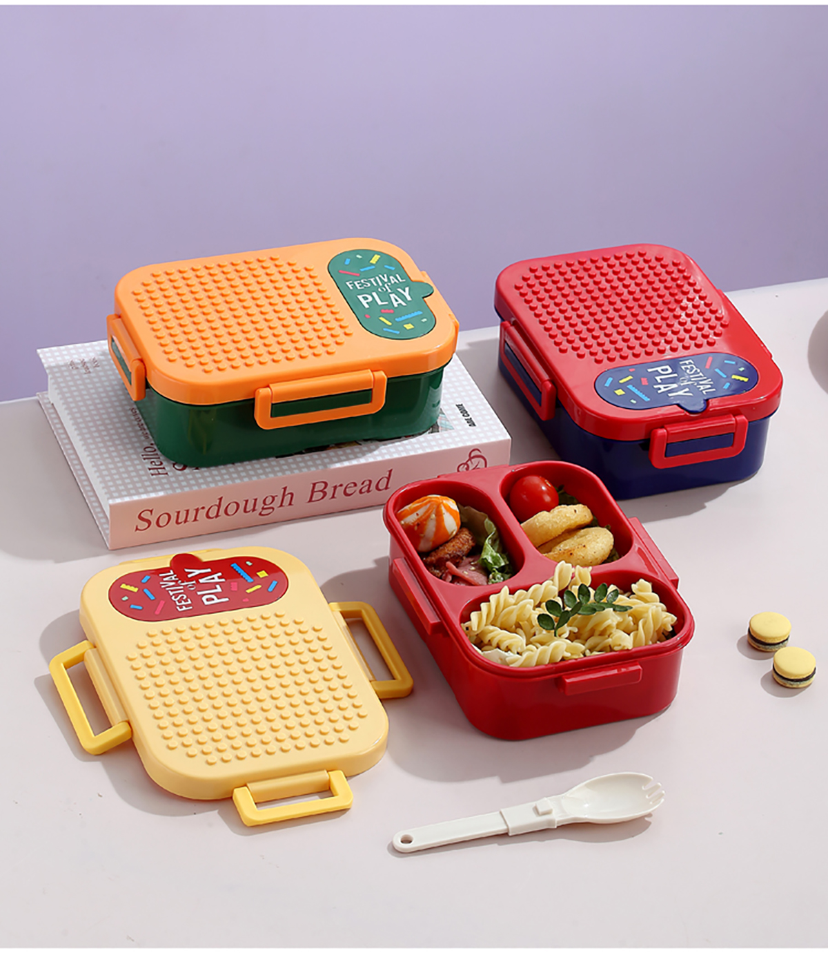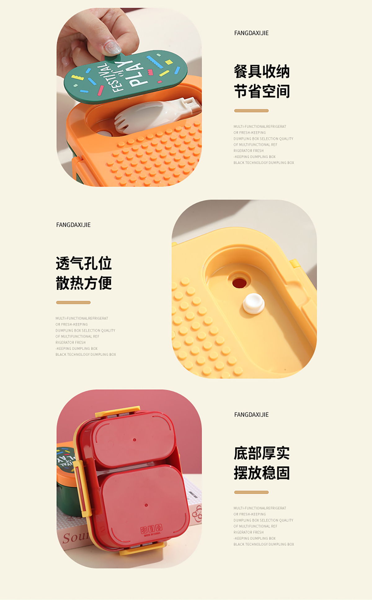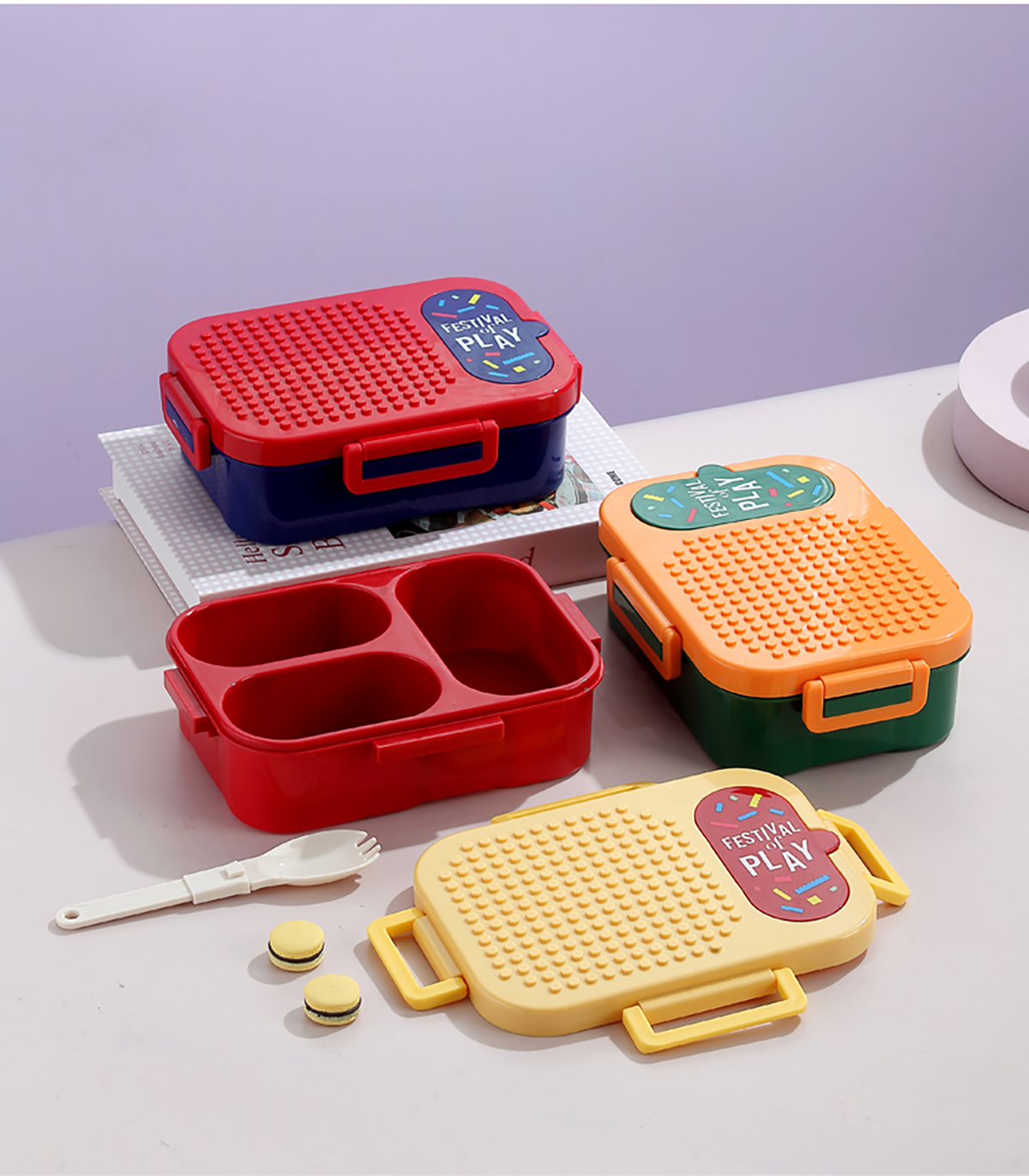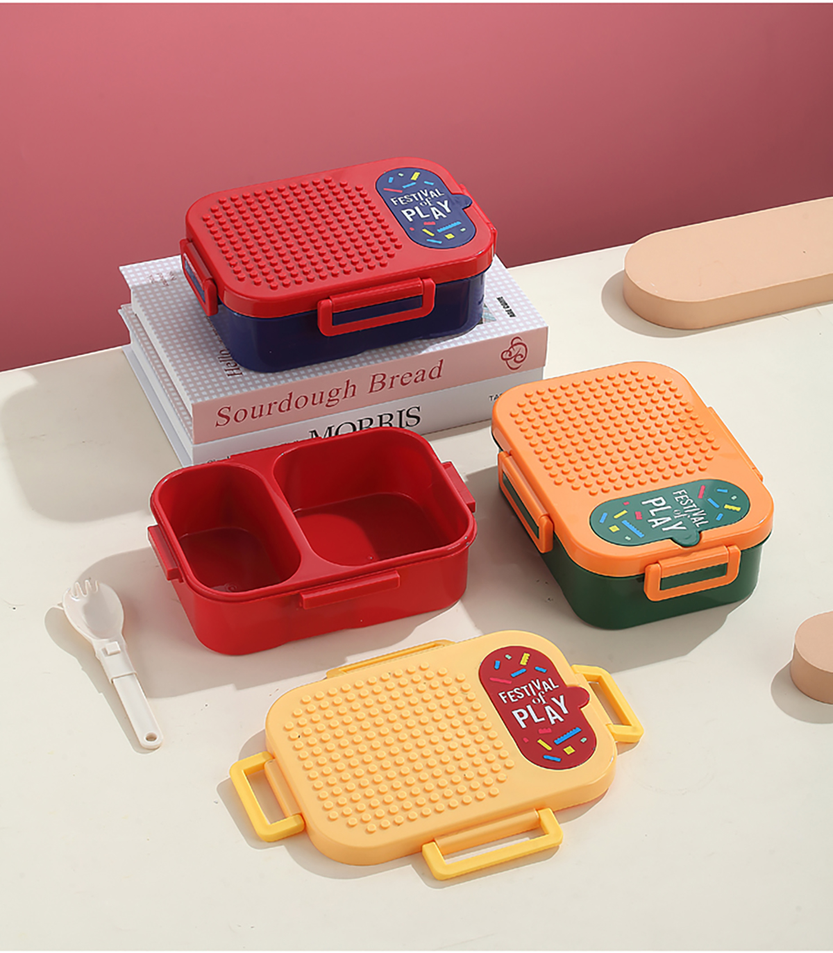 獨立密封積木塑料餐盒2格900ml/3格850ml (配PP折疊湯勺)