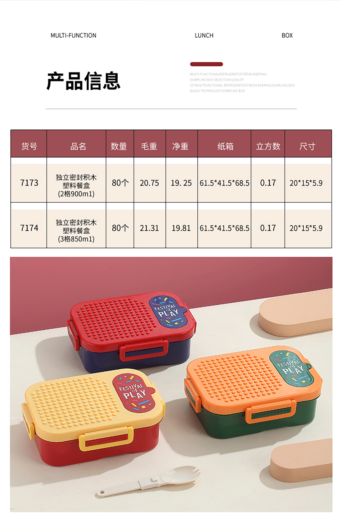 Size: LX-7173(2格):200*150*69mm/900ml