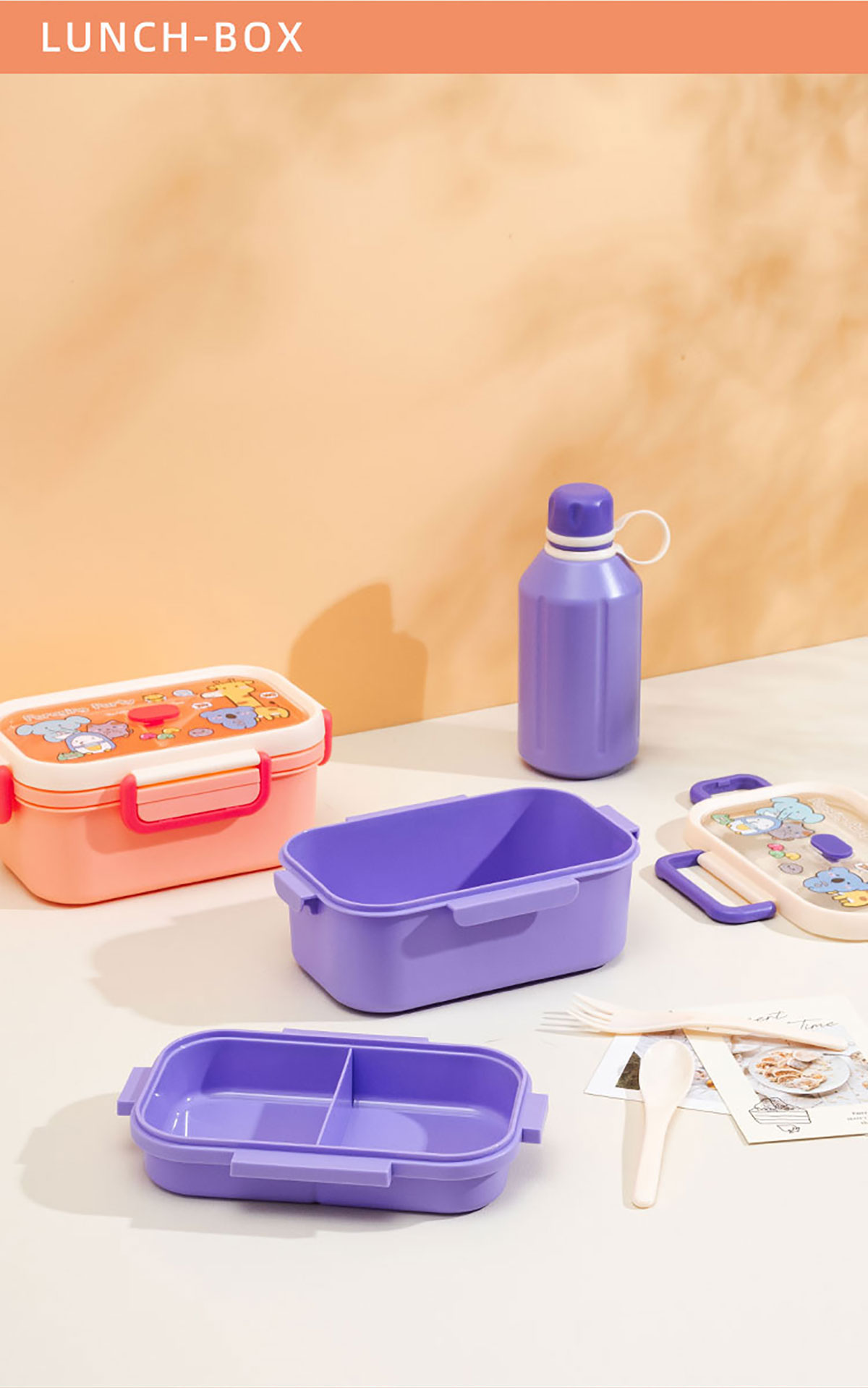 尚趣長方雙層飯盒(1100ml)/+圓形/方形運(yùn)動(dòng)水壺(500ml)