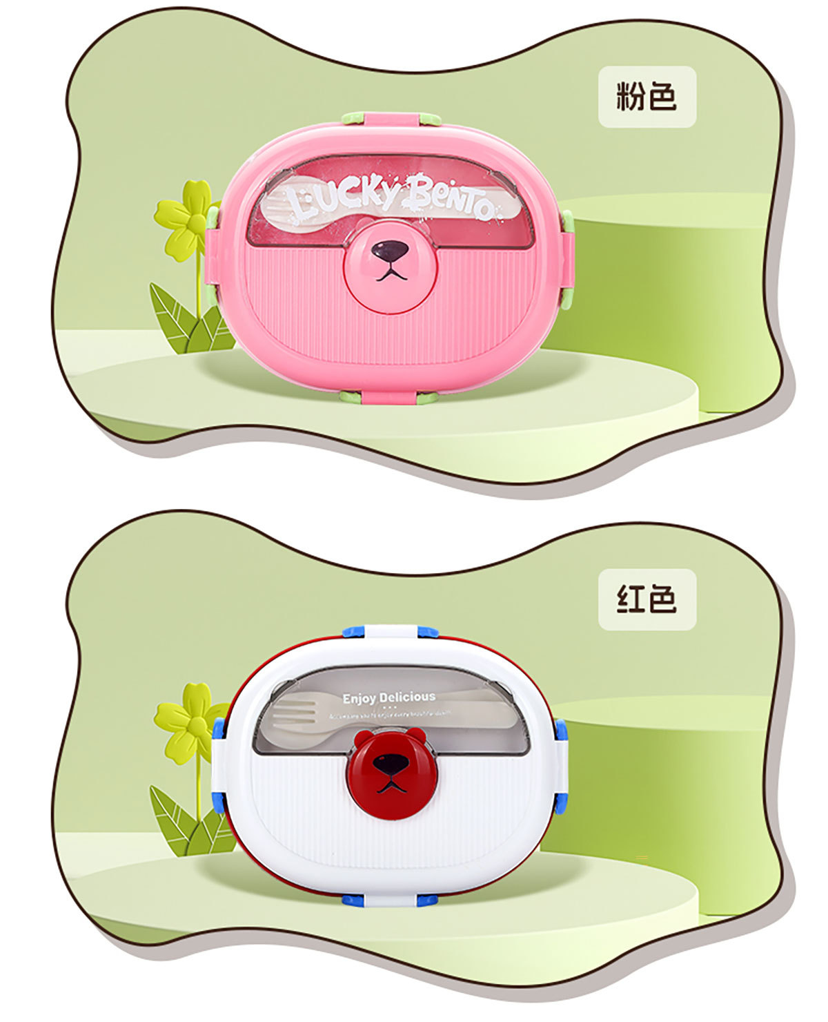 眼鏡熊分格飯盒1350ml