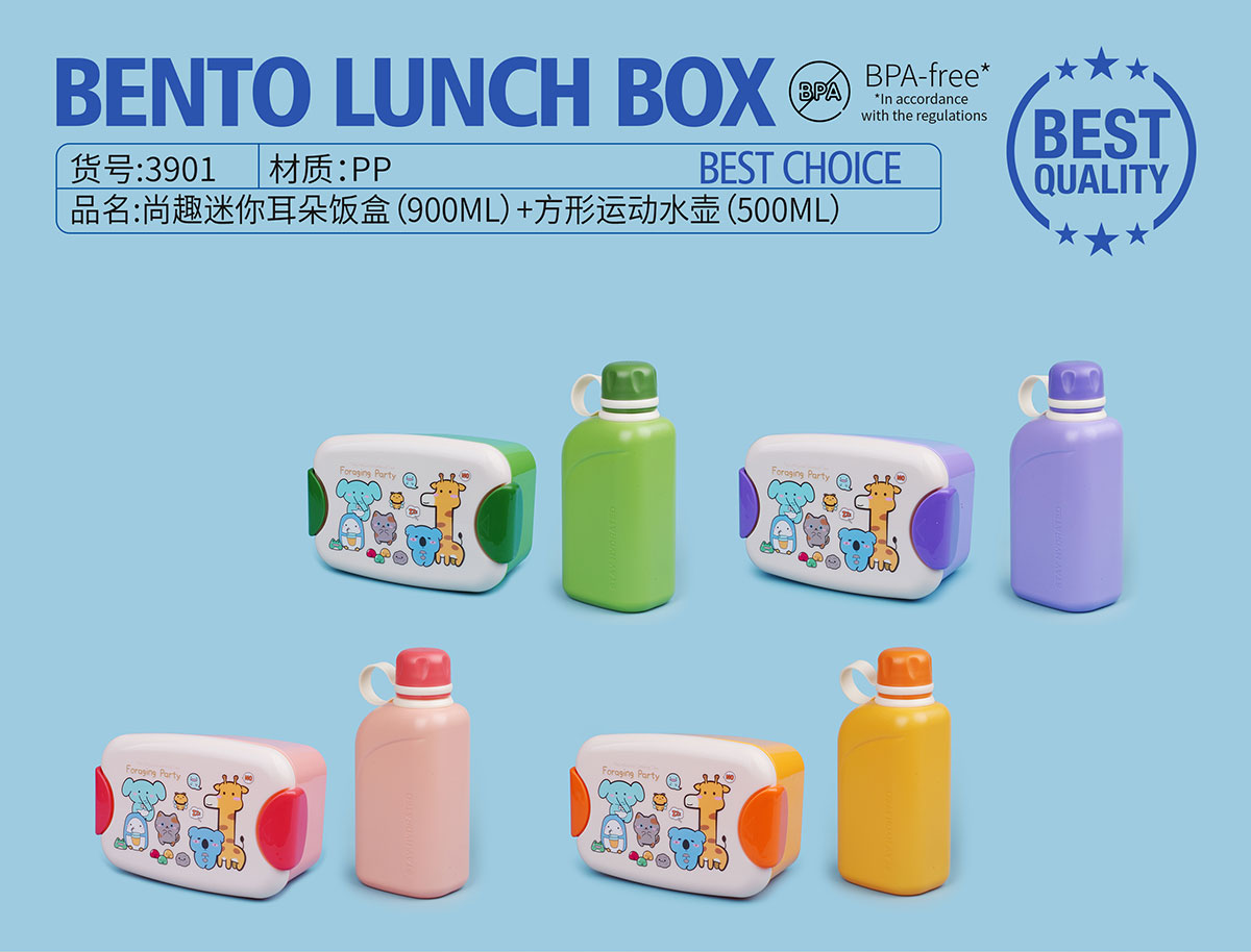 尚趣迷你耳朵飯盒(900ml)+方形運(yùn)動(dòng)水壺(500ml)