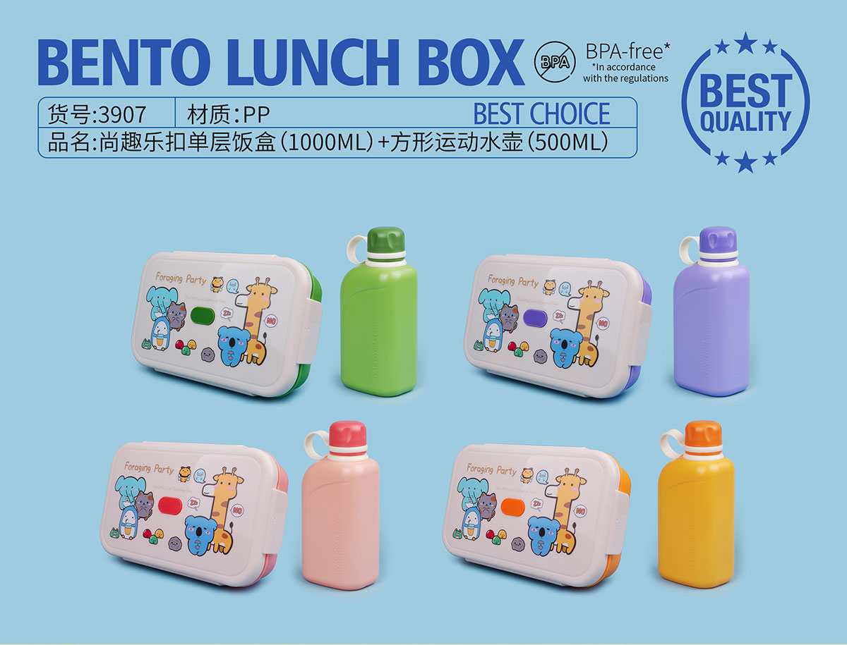 尚趣樂扣單層飯盒(1000ml)+方形運動水壺(500ml)