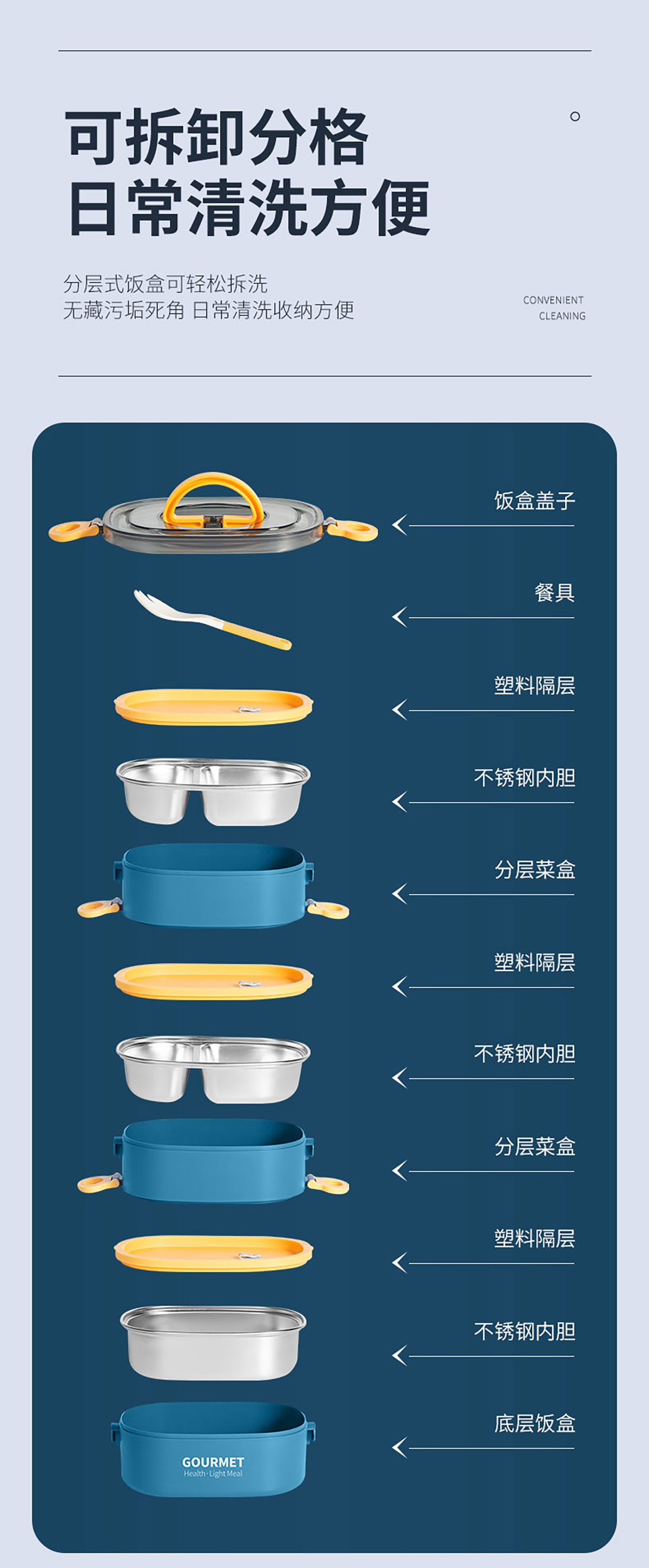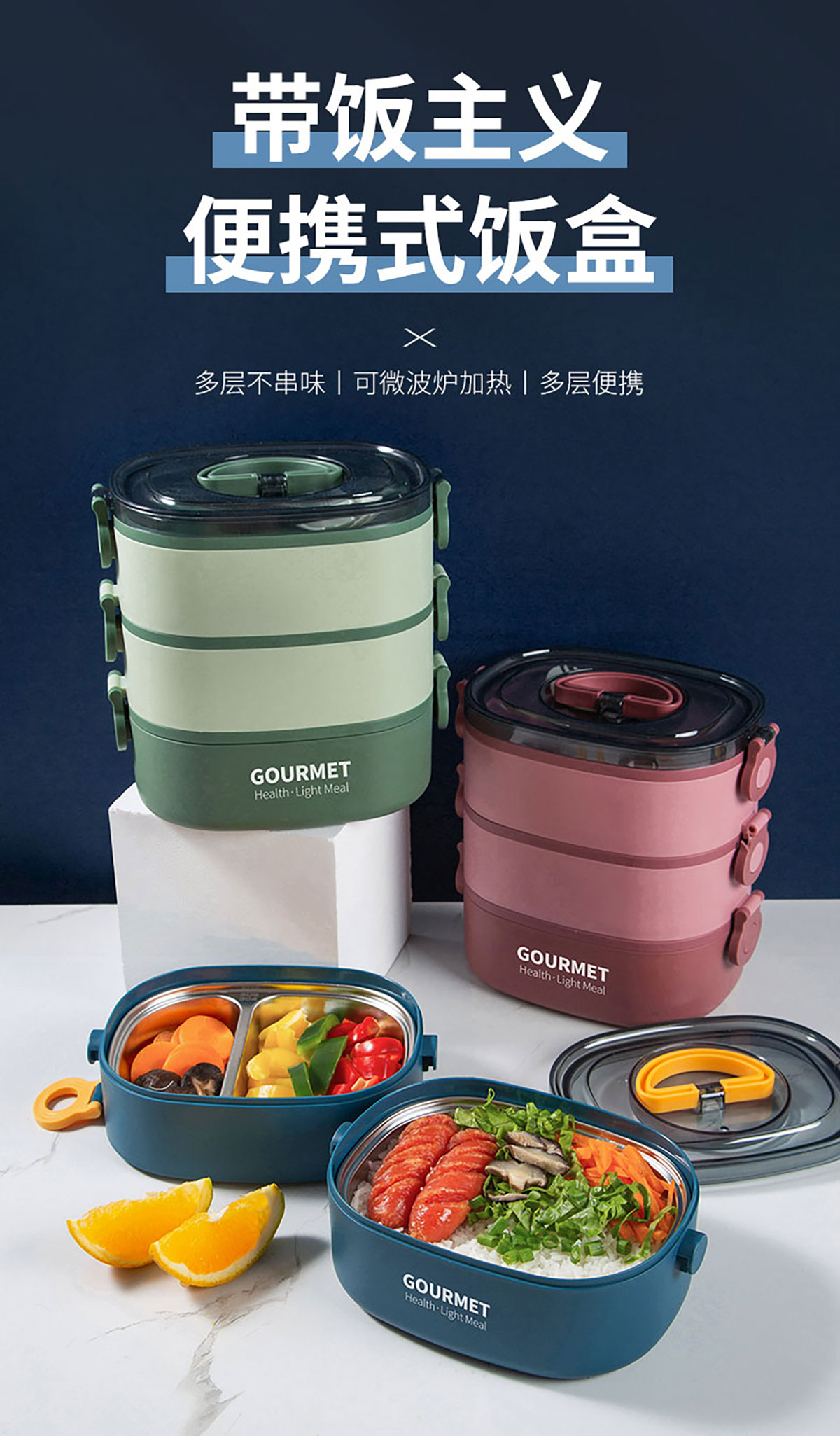 味鮮橢圓單層/雙層/三層不銹鋼飯盒