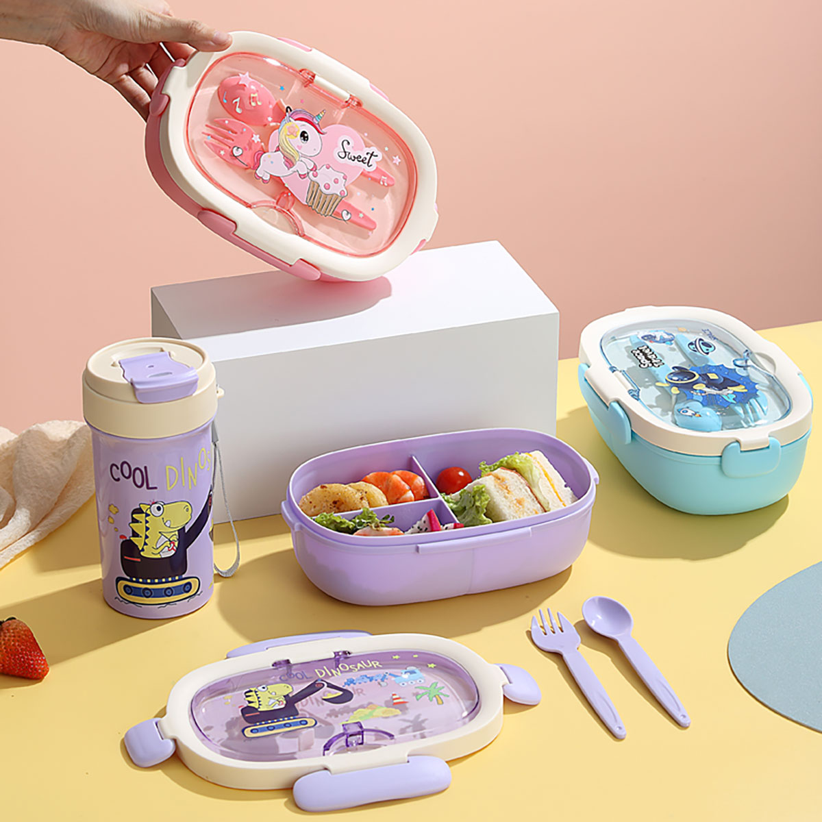 卡通旦形套裝飯盒(飯盒850ML+水杯480ML)