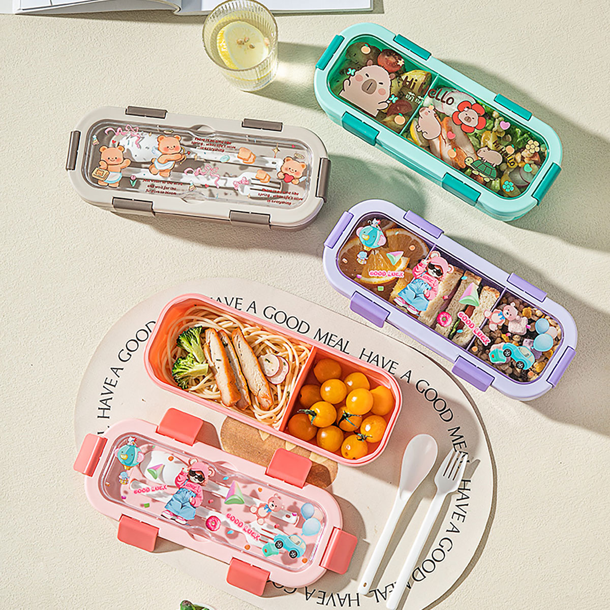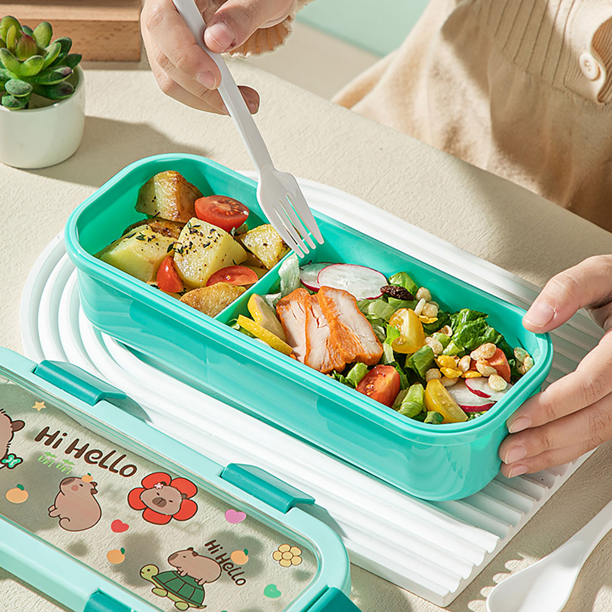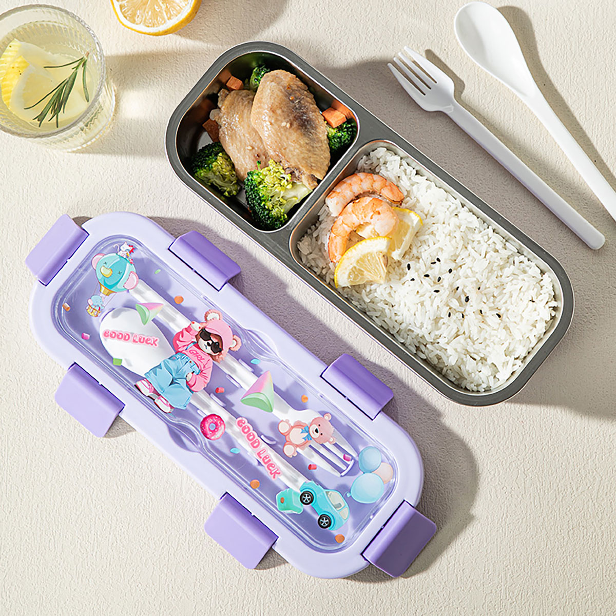 (印花款)愛(ài)悅長(zhǎng)方形便當(dāng)盒兩格/三格可選 塑料款/不銹鋼款