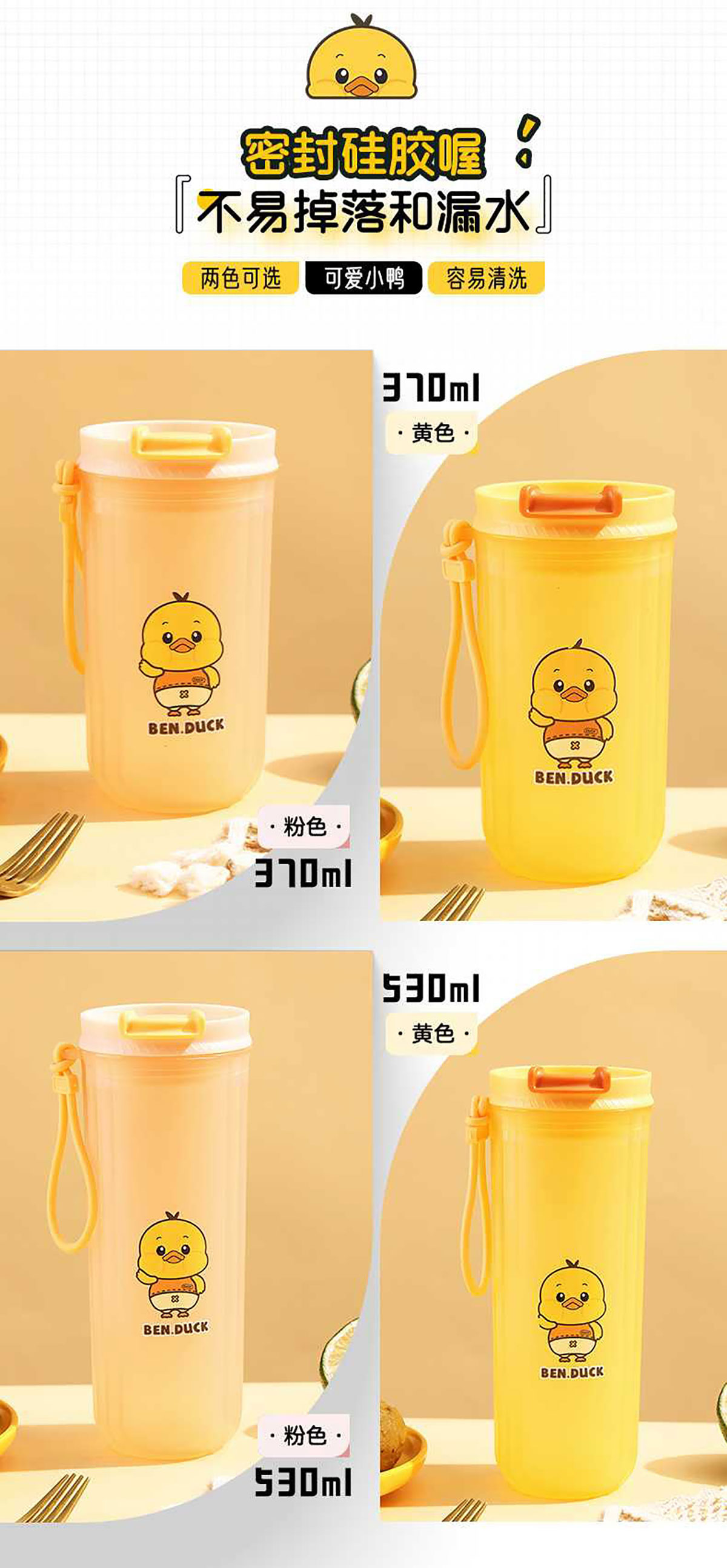 370ml/530ml笨鴨密封飲水壺