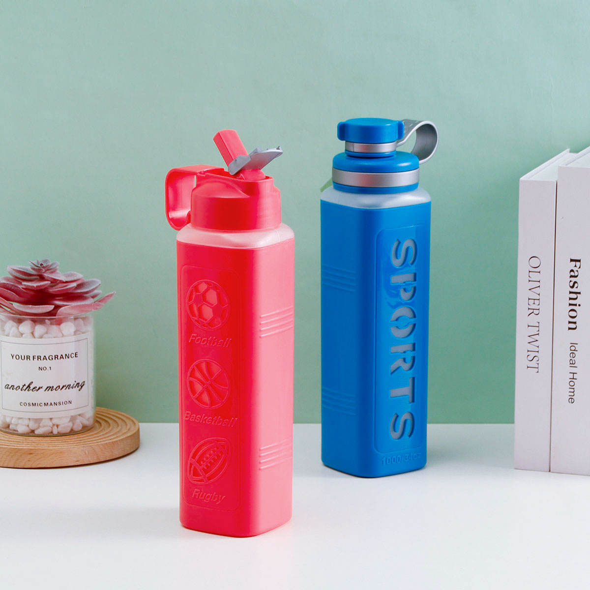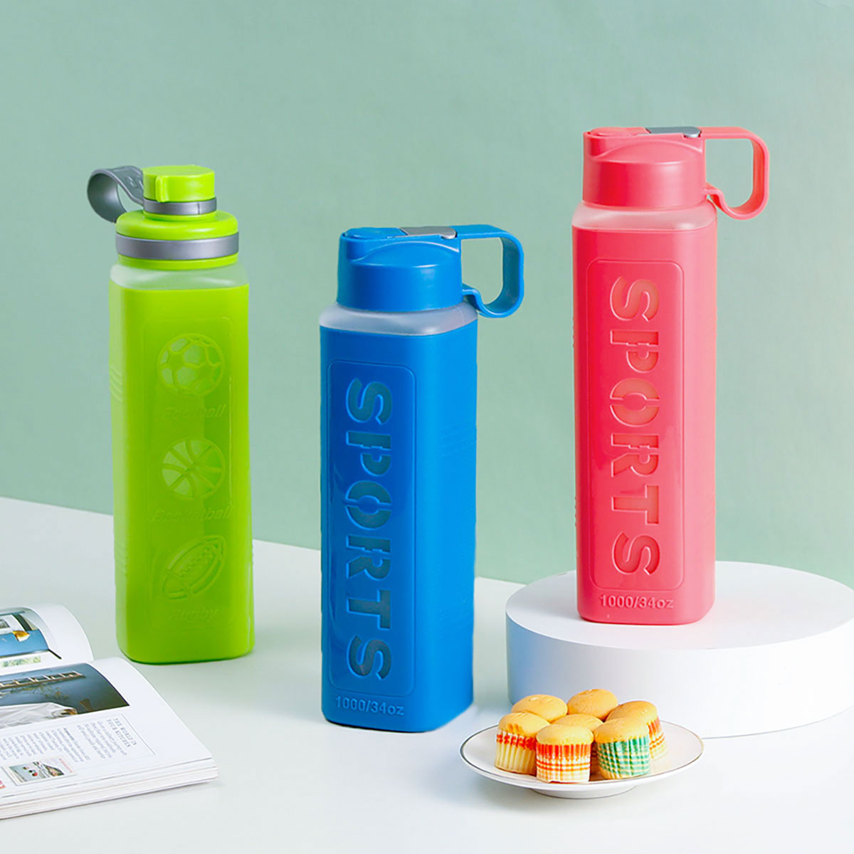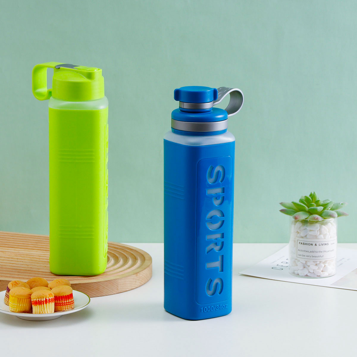 雙層直式吸管/聯(lián)帶方形水杯(1000ml)