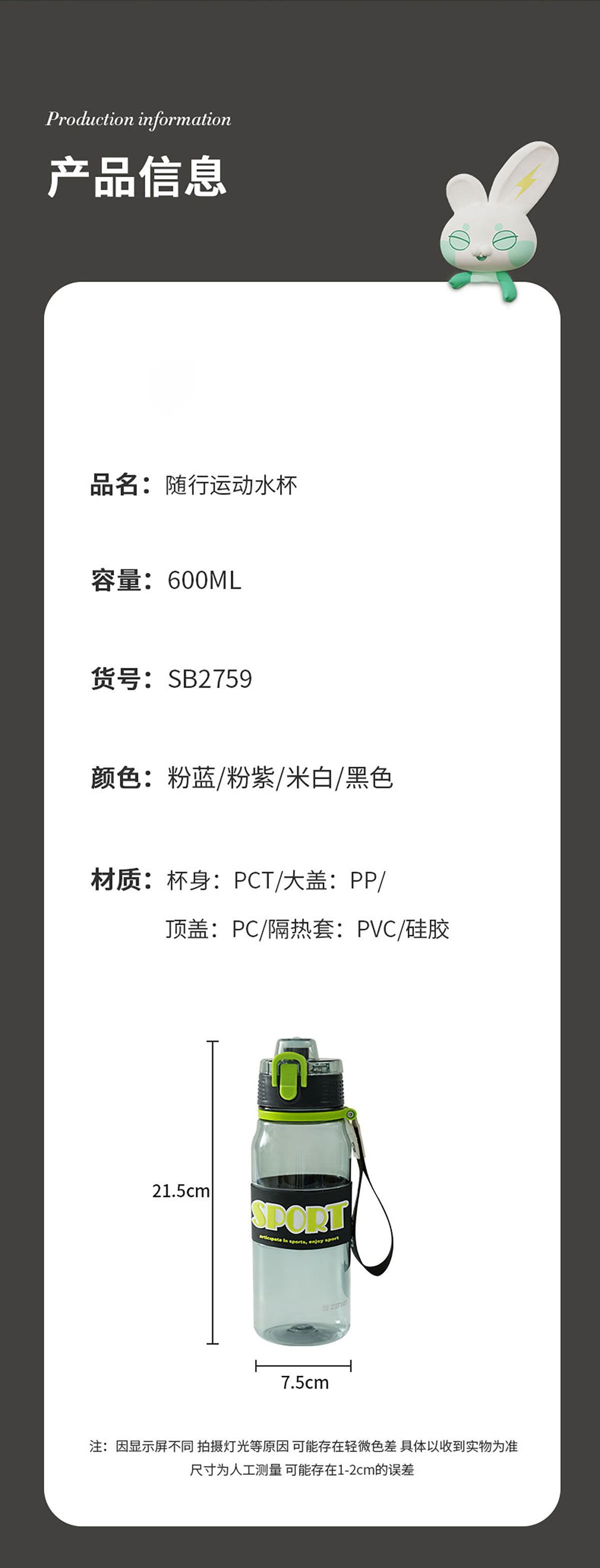 隨行運(yùn)動水杯(600ml) 彩盒裝/OPP裝