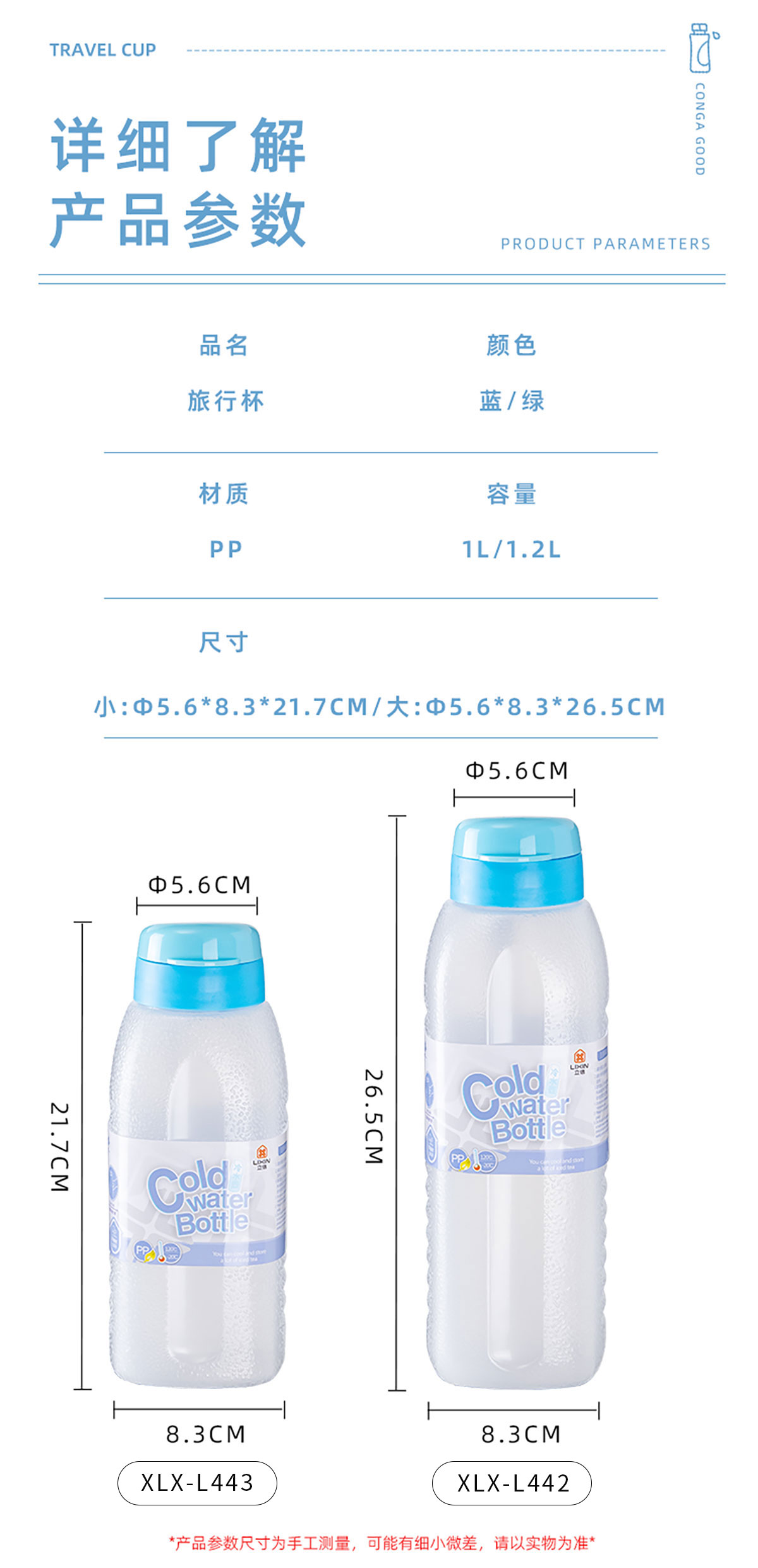 Size: XLX-L442(大號):Φ56*83*265mm/1.2L